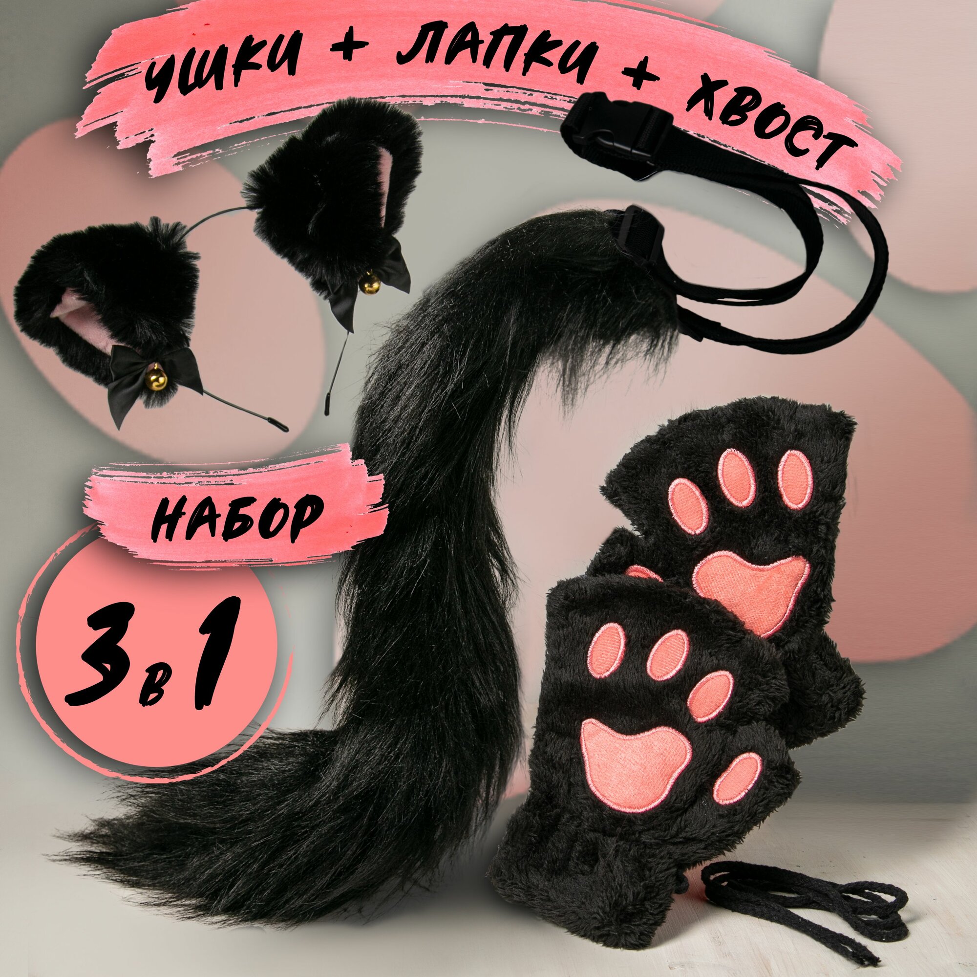 | Комплектация | Ушки, перчатки, лапки и хвост кошки, набор для квадробики |