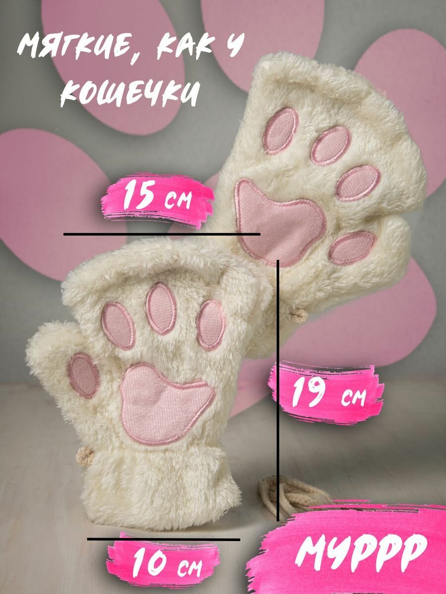 Перчатки без пальцев митенки, лапки кошки и ободок ушки кошки для квадробики