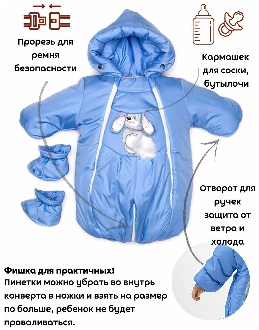СохранитьКомбинезон для новорожденных детский трансформер утепленный Malek Baby, 147шм Голубой 68см интересное: