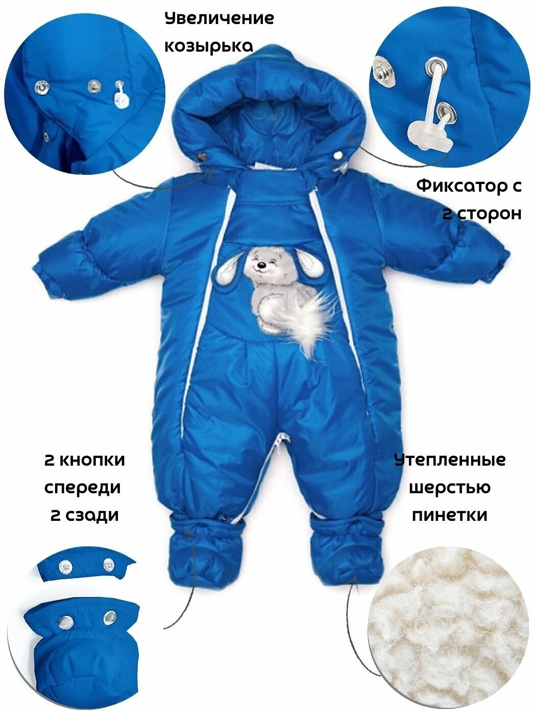 Комбинезон-трансформер детский для новорожденных зимний.Malek Baby. Василек арт.147шм (62 см)