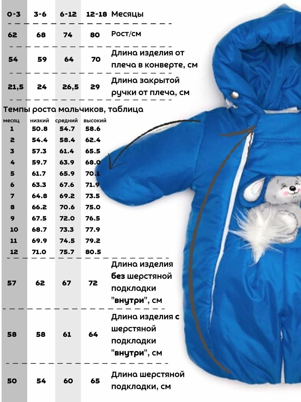 Комбинезон-трансформер, Зима, Голубой 147шм (62)