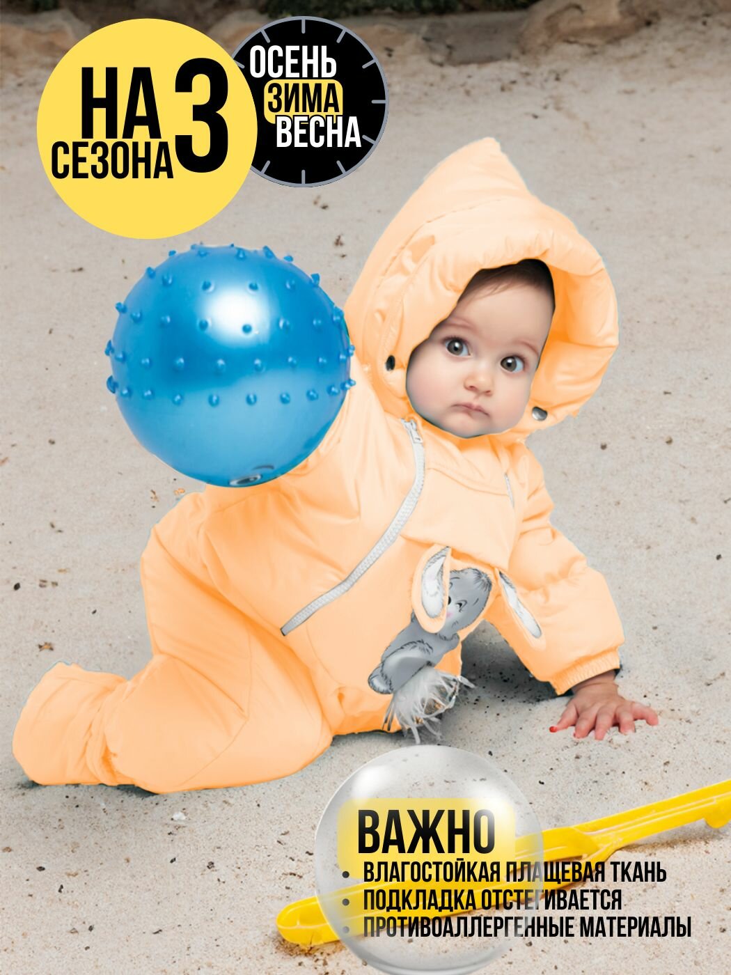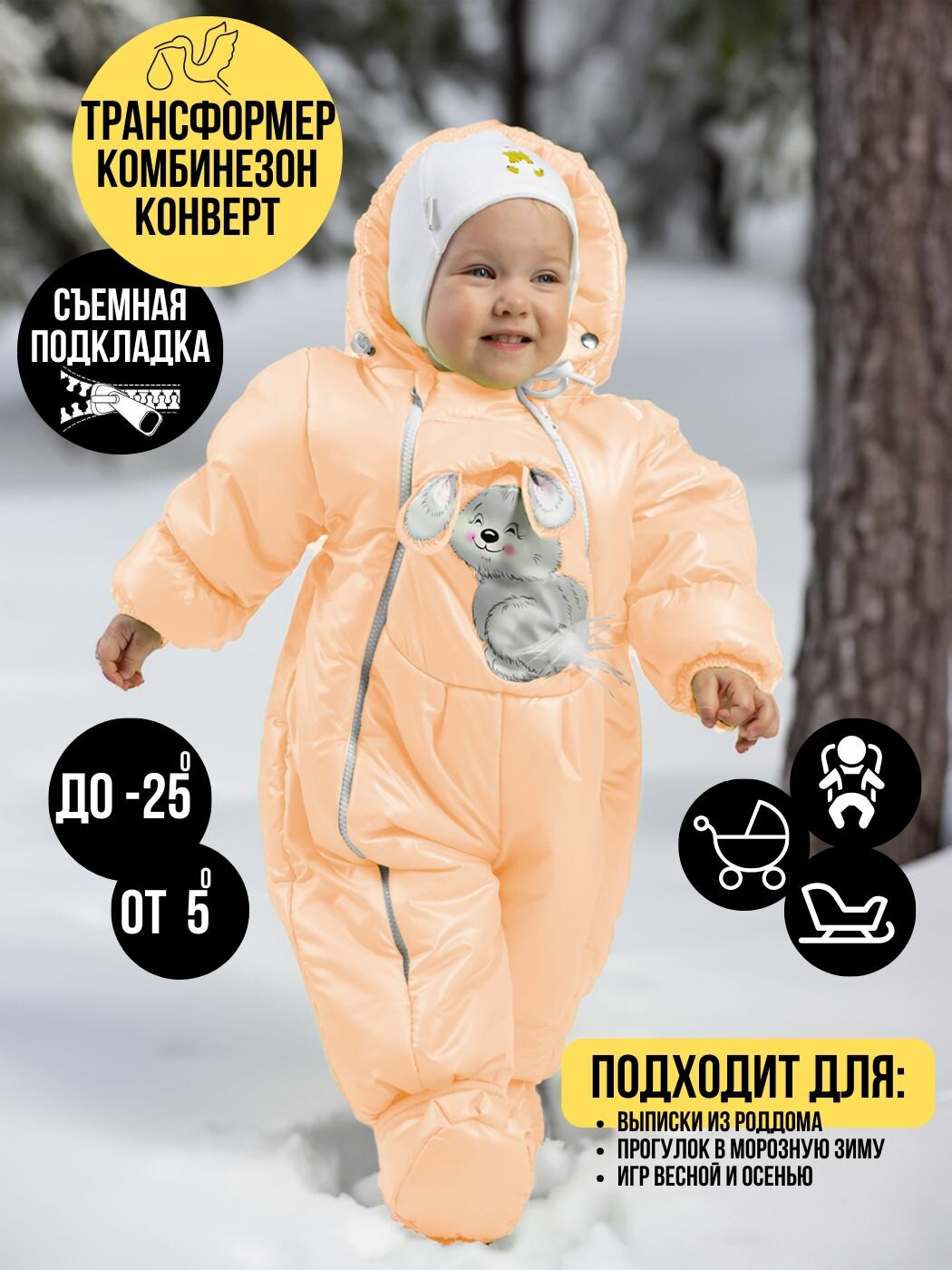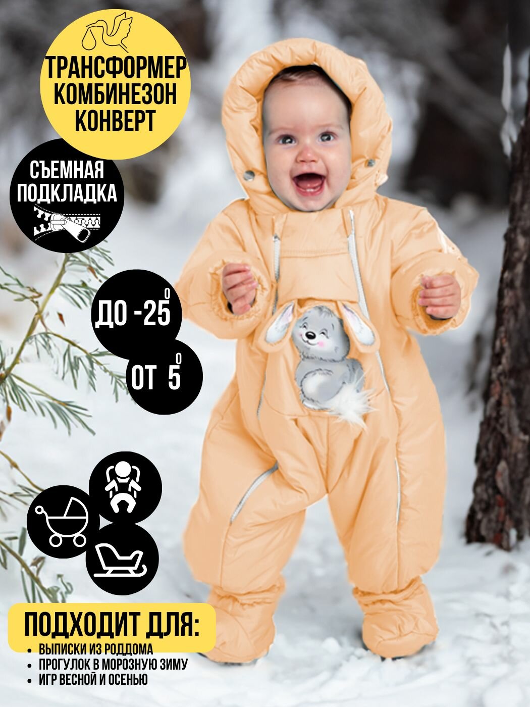 Комбинезон для новорожденных детский трансформер, зимний, подклад с содержанием шерсти отстёгивается, Светло-бежевый арт. 147шм ( 80 см)
