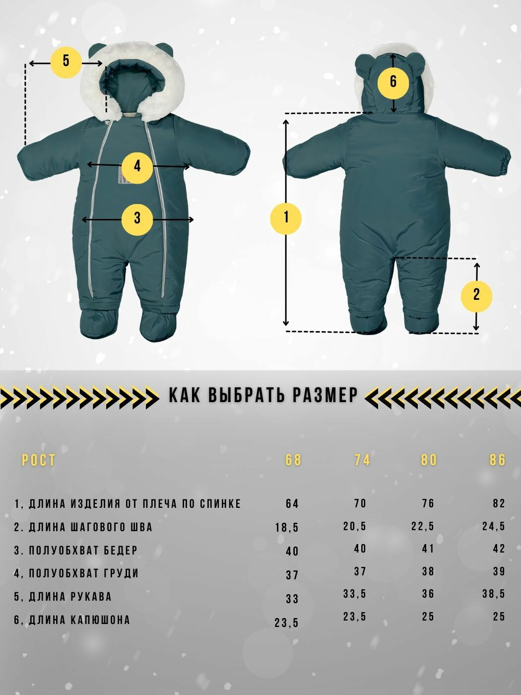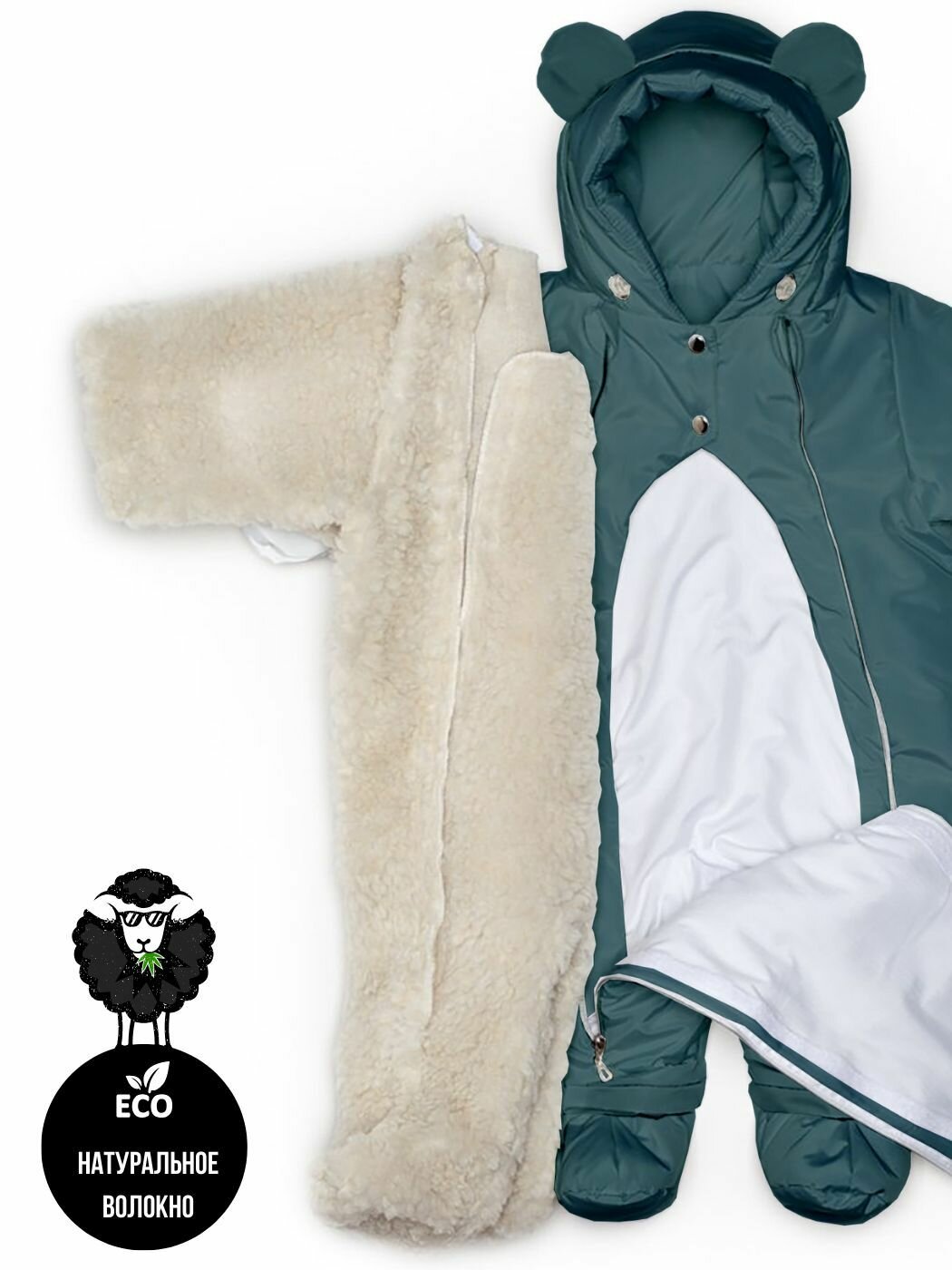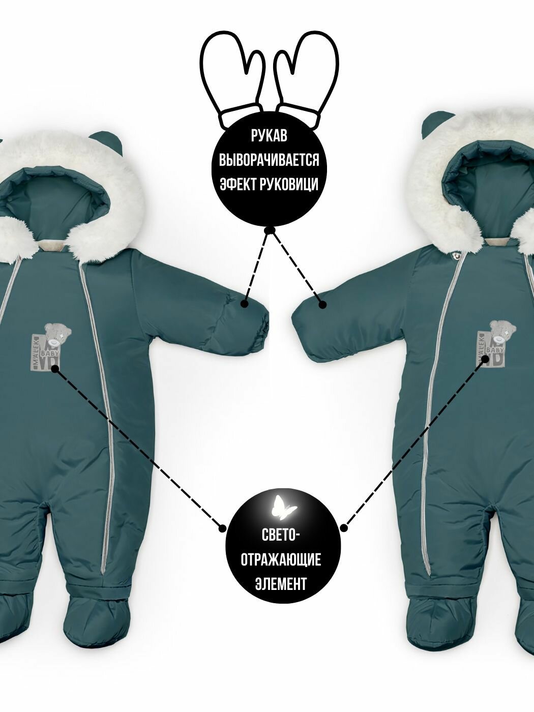 | Особенности модели | ветрозащита, водонепроницаемый, капюшон, мембрана, пинетки в комплекте, подкладка, съемный капюшон, ушки |