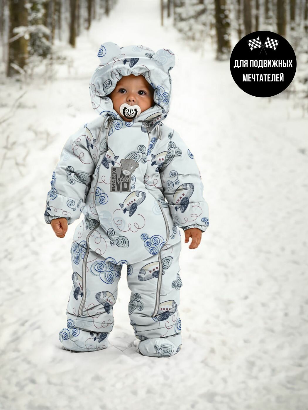 | Особенности модели | ветрозащита, водонепроницаемый, капюшон, мембрана, пинетки в комплекте, подкладка, съемный капюшон, ушки |
