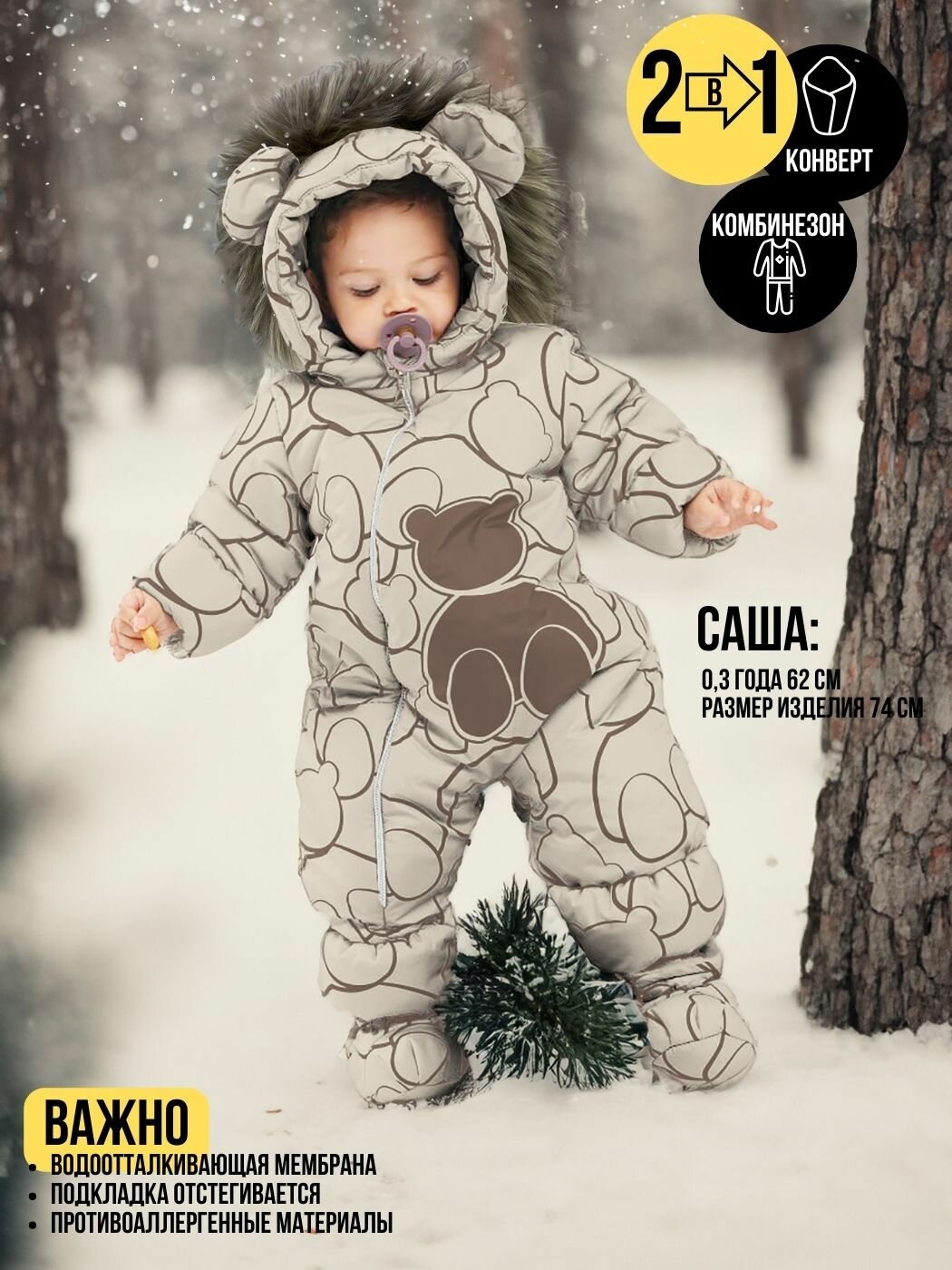 Комбинезон-трансформер, Мишки на бежевом, 137шм/2 (74 см)