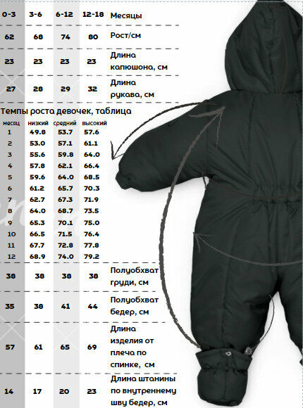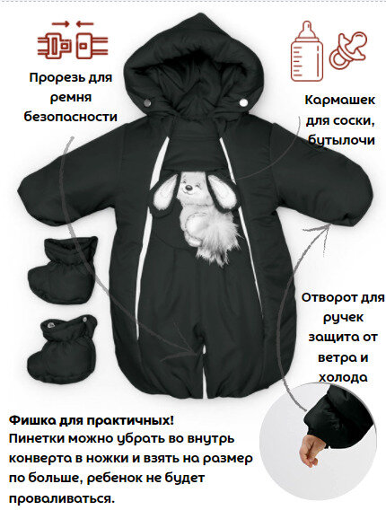 | Особенности модели | варежки в комплекте, водонепроницаемый, капюшон, пинетки в комплекте, съемный капюшон, съемный мех, утепленная |
