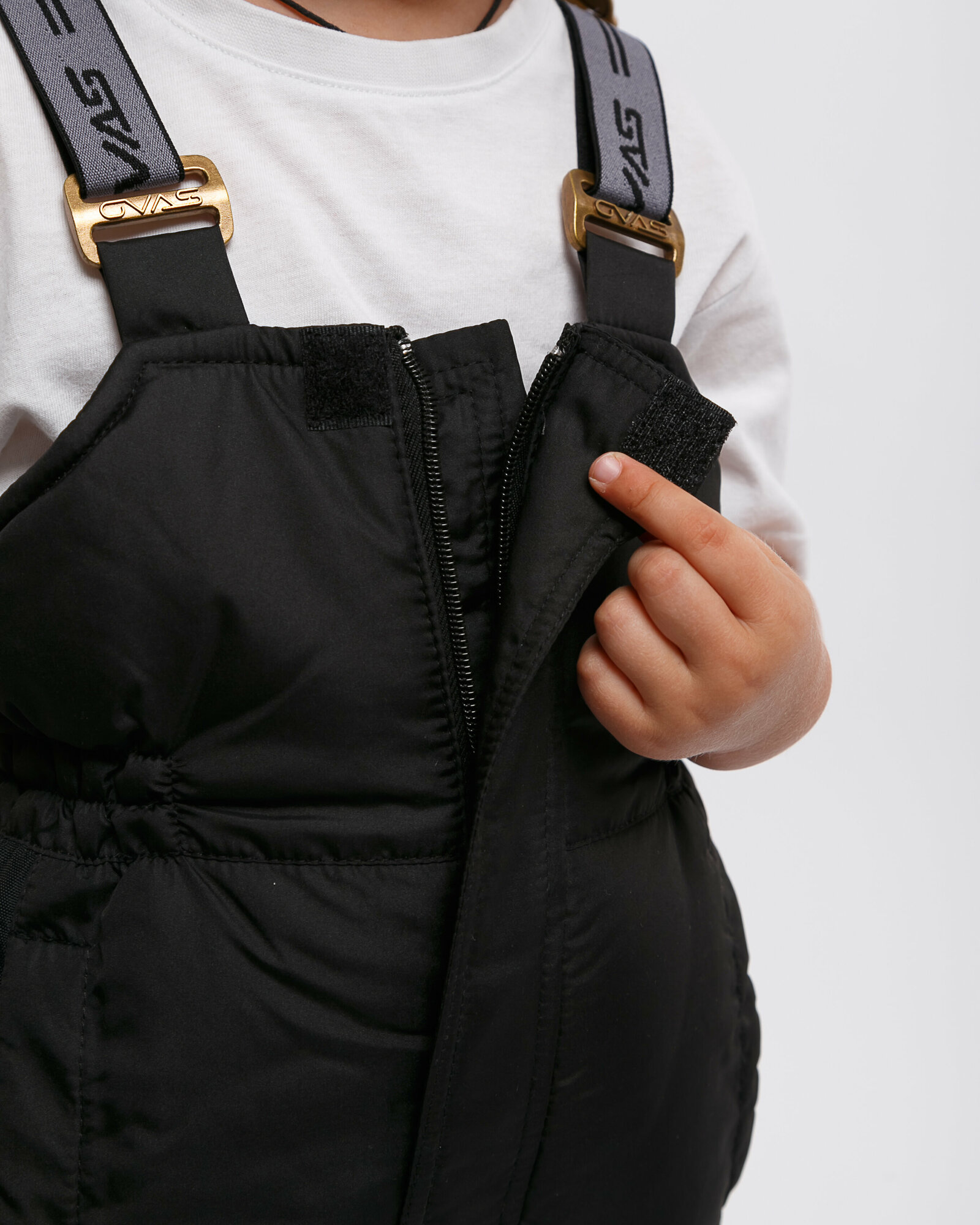 Зимний черный утепленный полукомбинезон для мальчика болоневый непромокаемый из мембраны на резинке с бретелями KAYSAROW Тимофей рост 92