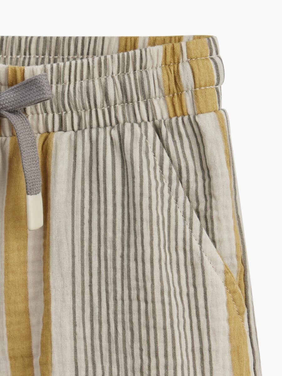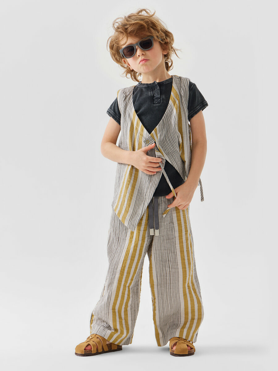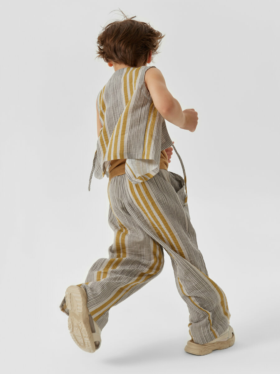 88197, Брюки детские Happy Baby, брюки летние хлопковые на завязках, одежда для девочки и мальчика, серые в полоску, размер 116-122