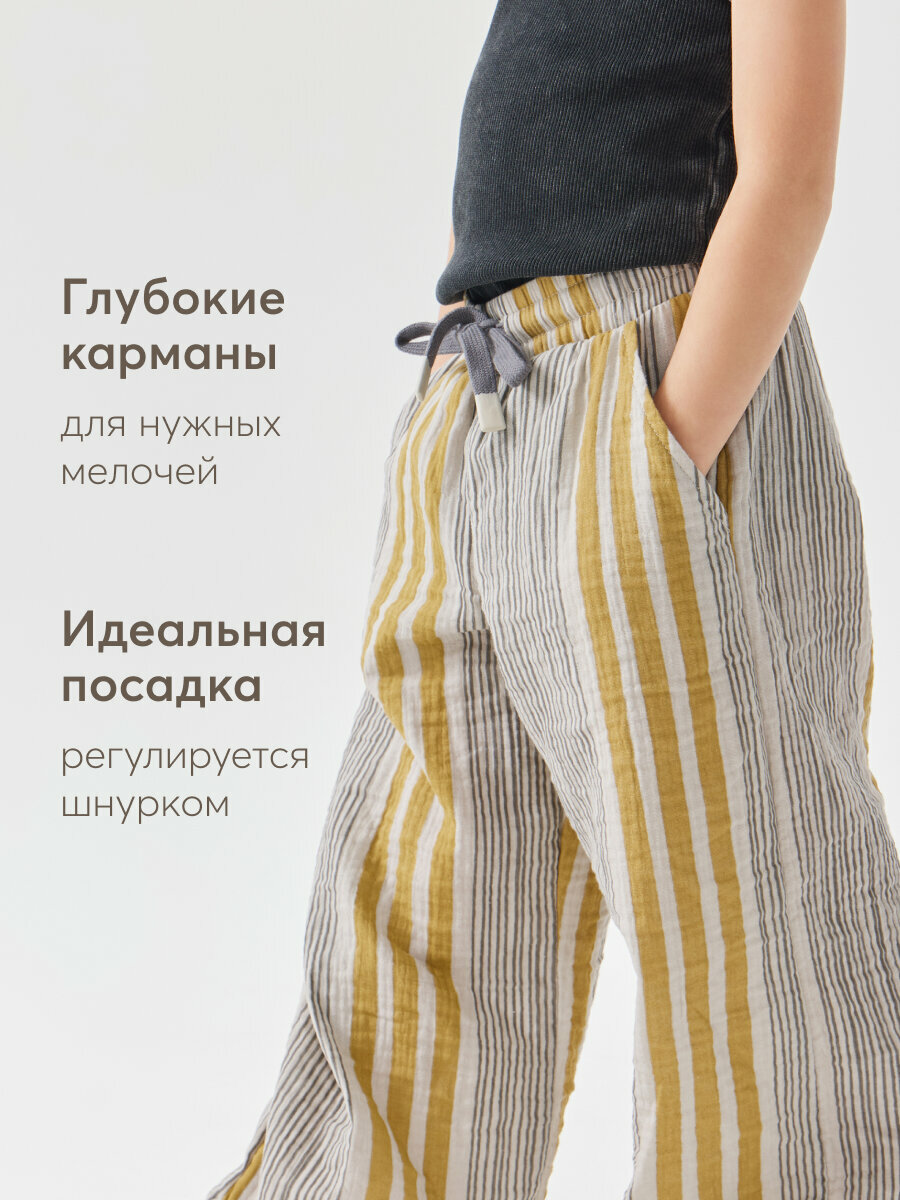 Сохранить88197, Брюки детские Happy Baby, брюки летние хлопковые на завязках, одежда для девочки и мальчика, серые в полоску, размер 128-134 интересное: