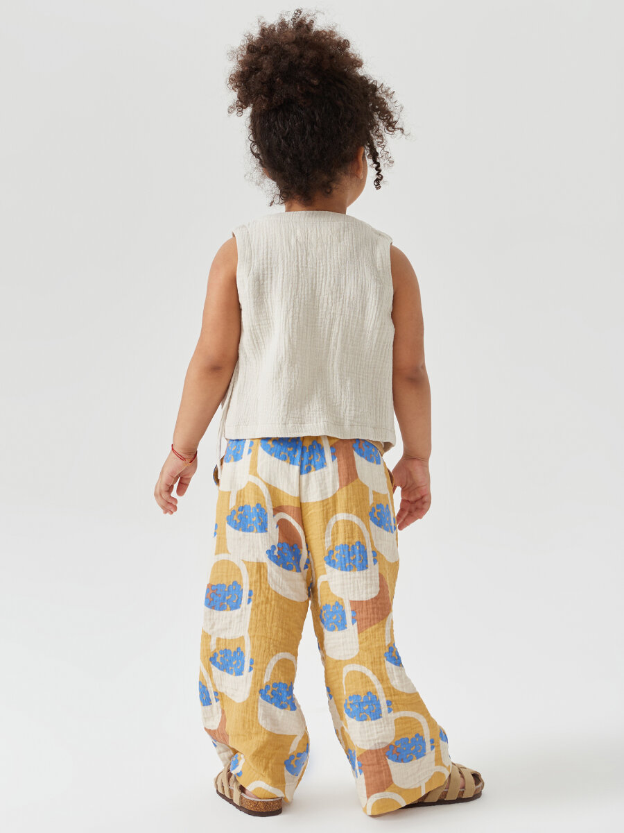 88197, Брюки детские Happy Baby, брюки летние хлопковые на завязках, одежда для девочки и мальчика, бежевые, размер 116-122