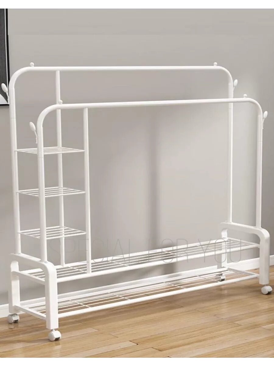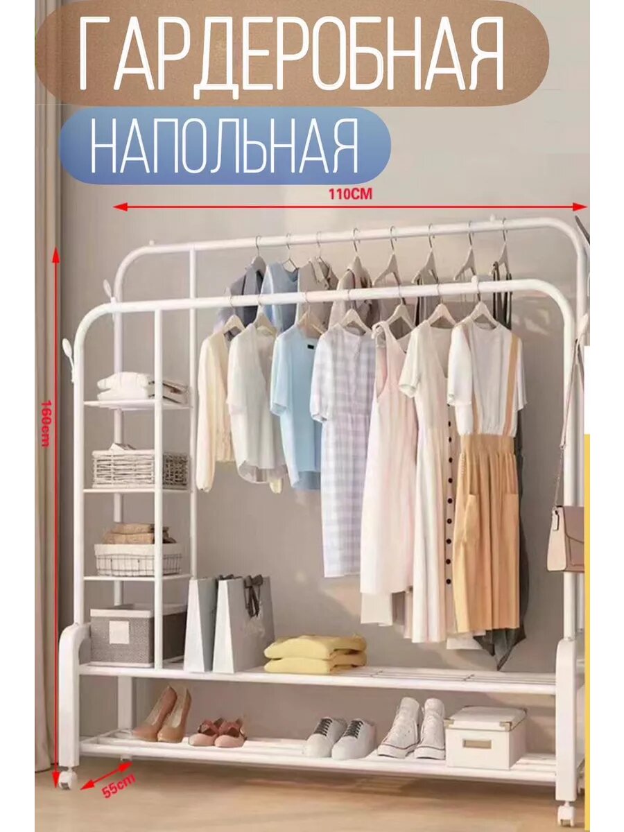 Вешалка напольная с двумя рейлами и полками , на колесах белая интересное:
