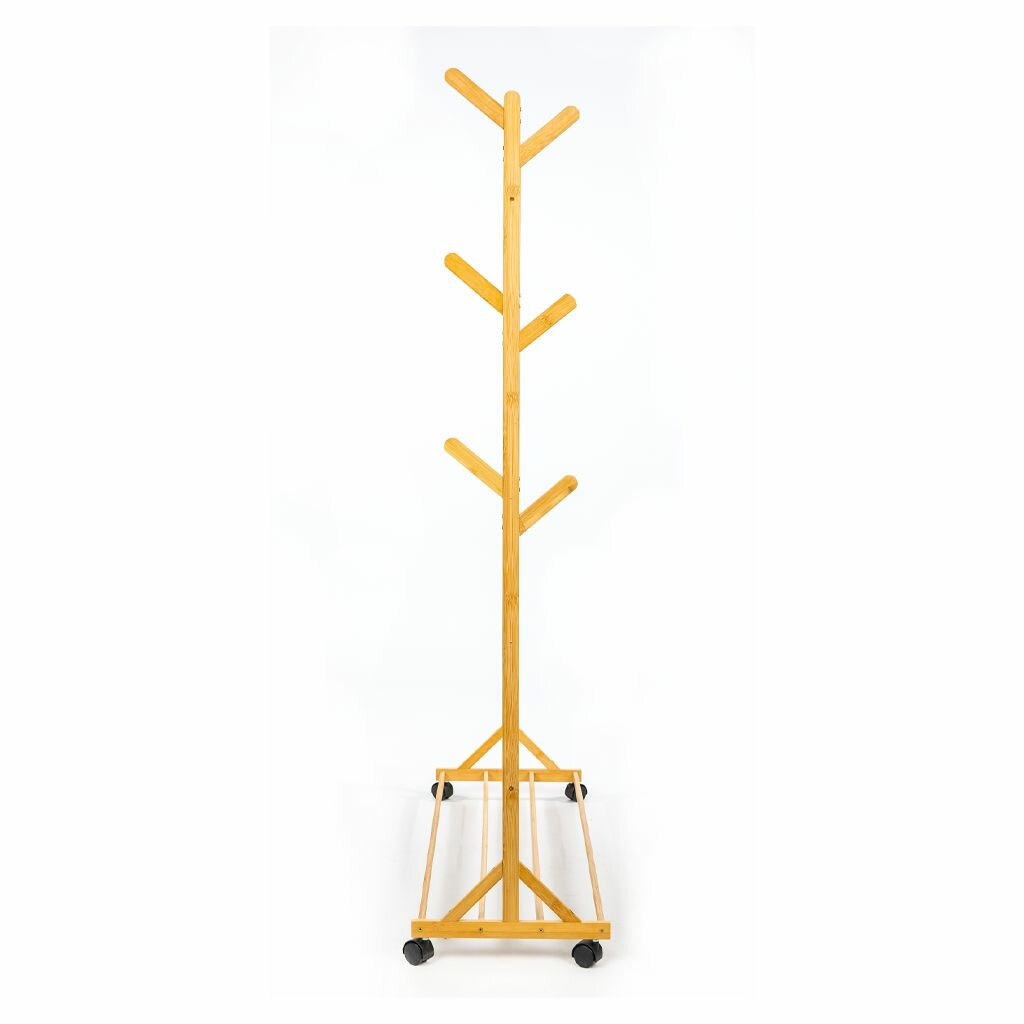 Вешалка для одежды и аксессуаров напольная в прихожую Solmax&Home, бамбук 53х25х175