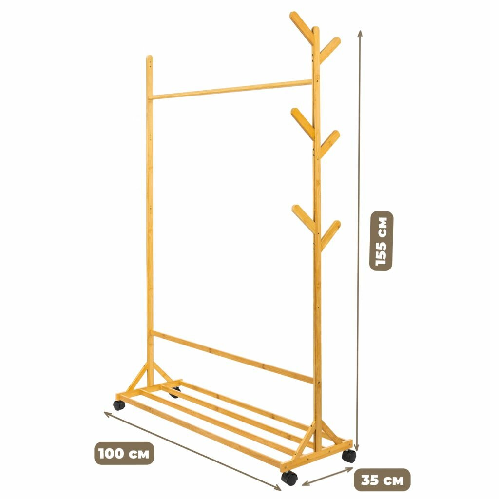 Вешалка напольная для одежды стойка в прихожую Solmax&Home, бамбук, 100х35х155 интересное: