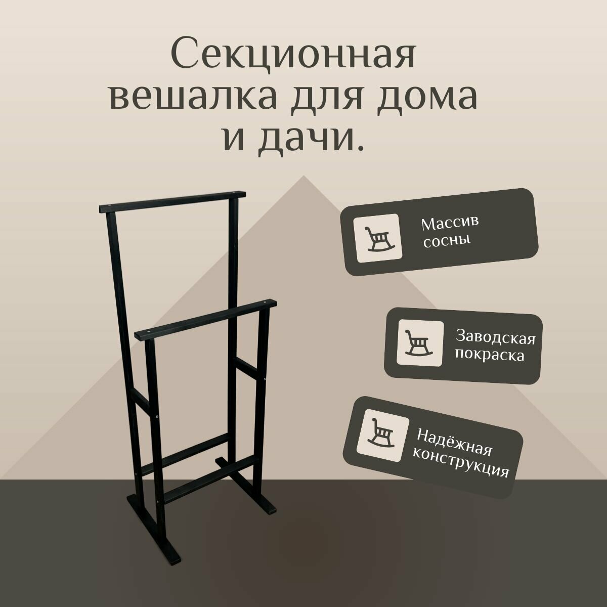 Вешалка напольная деревянная тройная для одежды костюмная из массива березы, черная