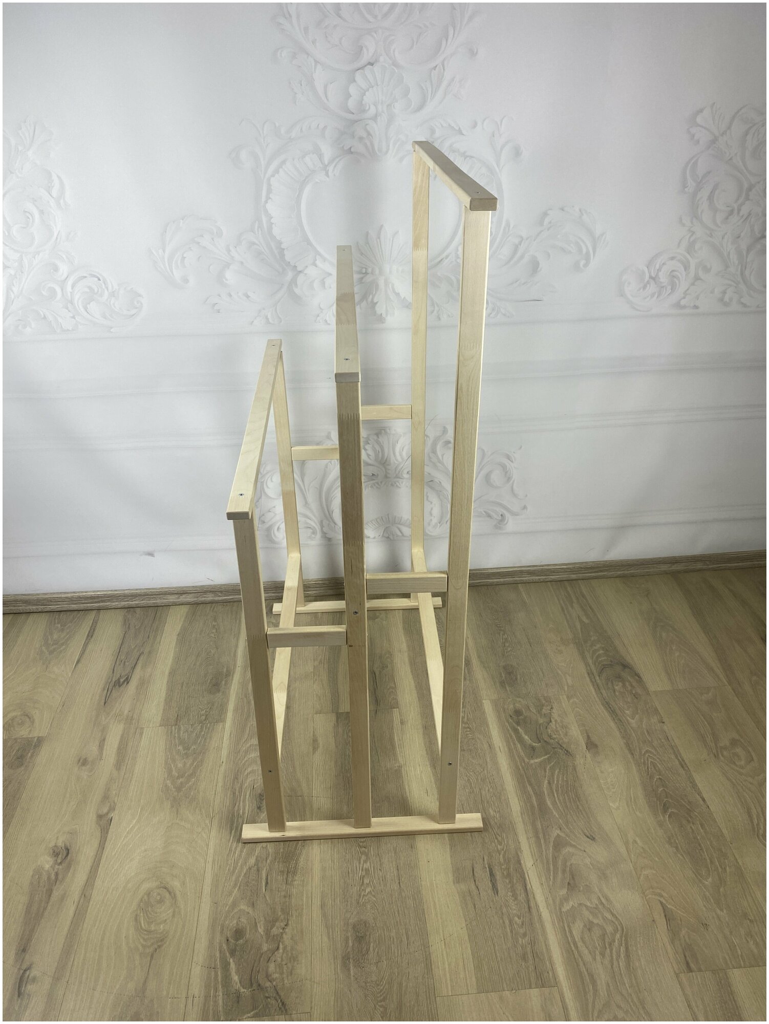 Вешалка напольная трехсекционная для одежды и аксессуаров деревянная из массива березы без покраски