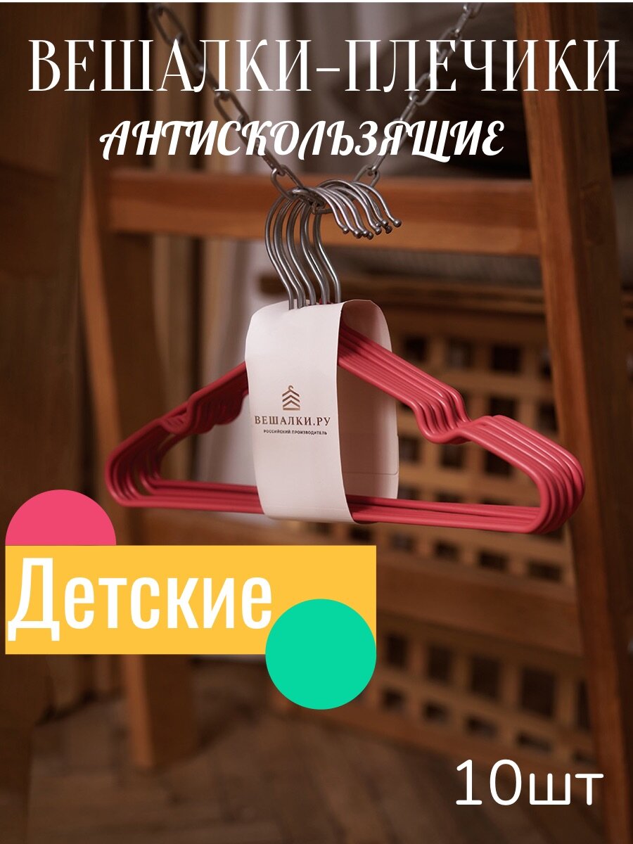 Вешалка антискользящая детская металлическая с ПВХ покрытием, 10 шт, 29,5х17 см, цвет белый