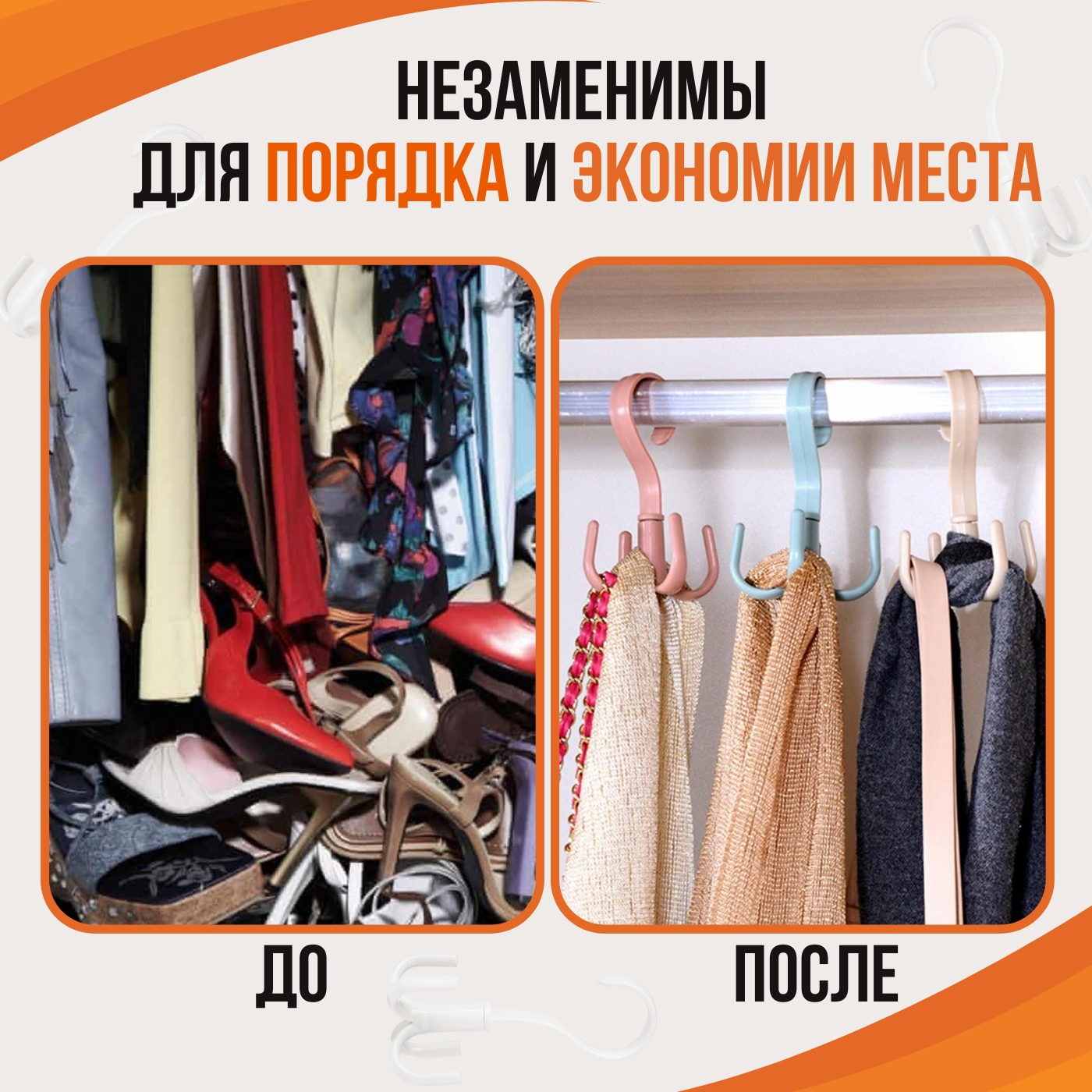 | Дополнительная информация | Вешалка для шкафа с вращением, Поворотный крючок органайзер для одежды, ремней, сумок, платков, шарфов |