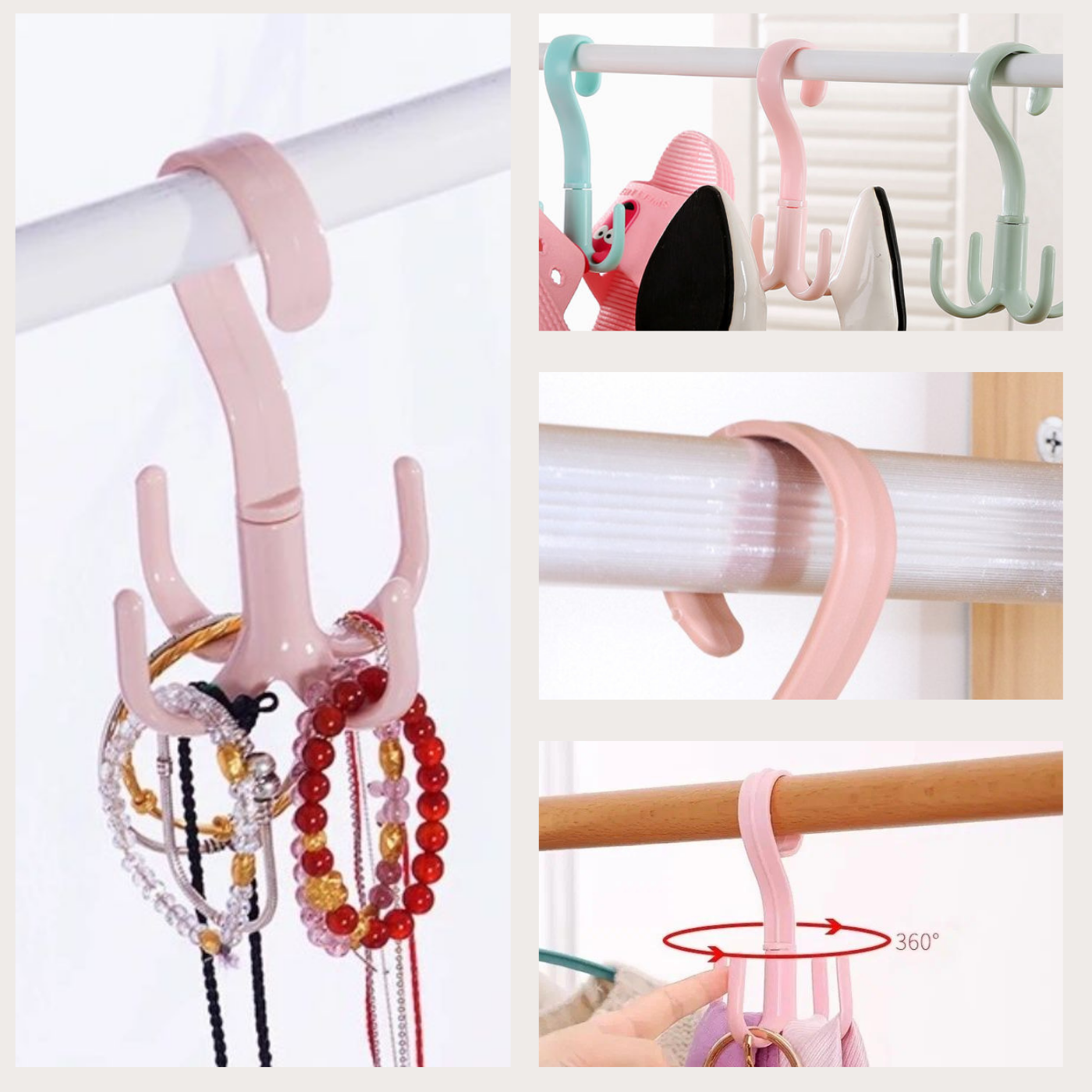 Купить Вешалка для шкафа с вращением, Поворотный крючок органайзер для одежды, ремней, сумок, платков, шарфов (розовый)