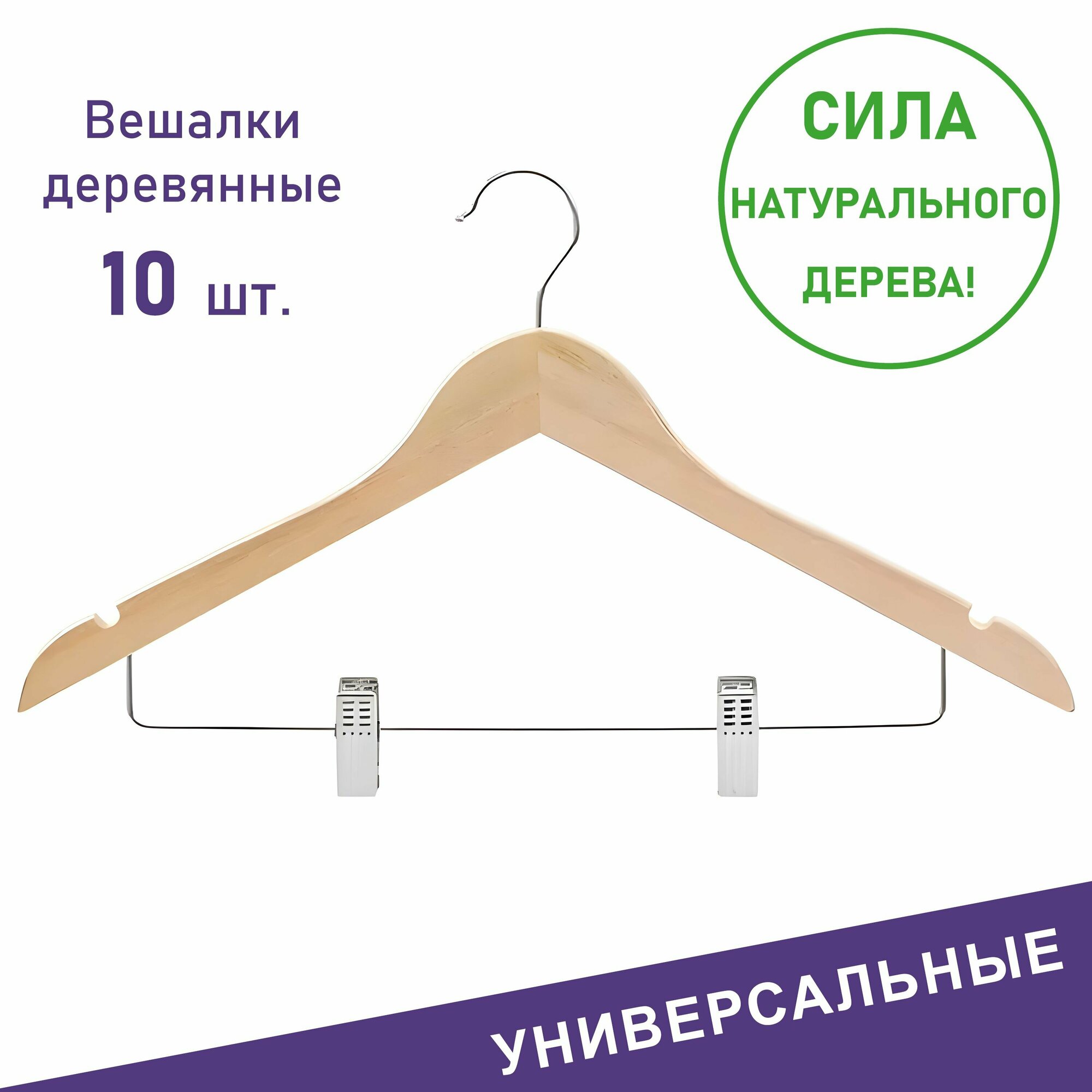Вешалки для одежды, Formula Tepla, деревянные с зажимами, 10 шт, цвет натуральное дерево интересное: