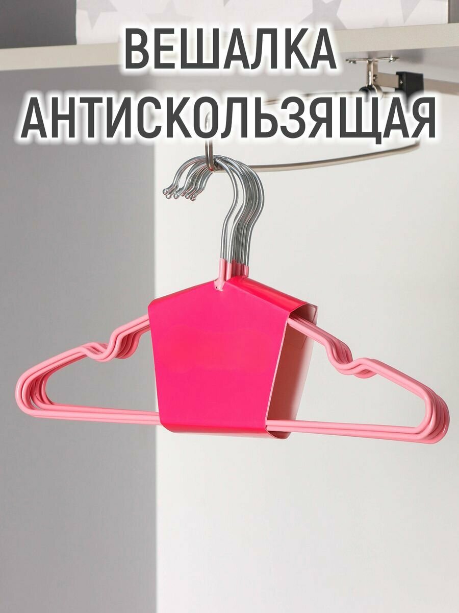 Плечики для одежды детские, 10 шт, 29×16,5 см, металл, ПВХ покрытие, цвет розовый интересное:
