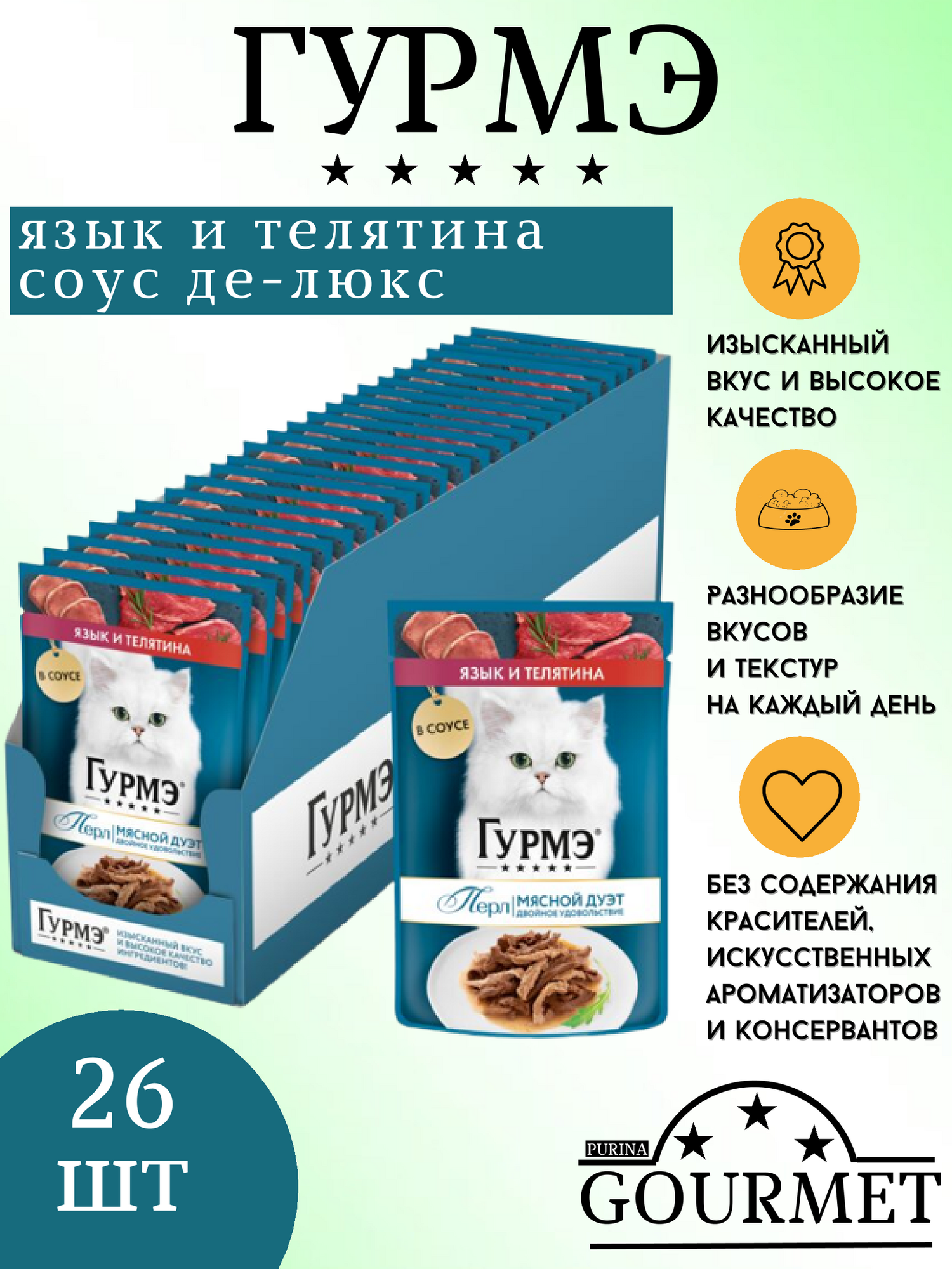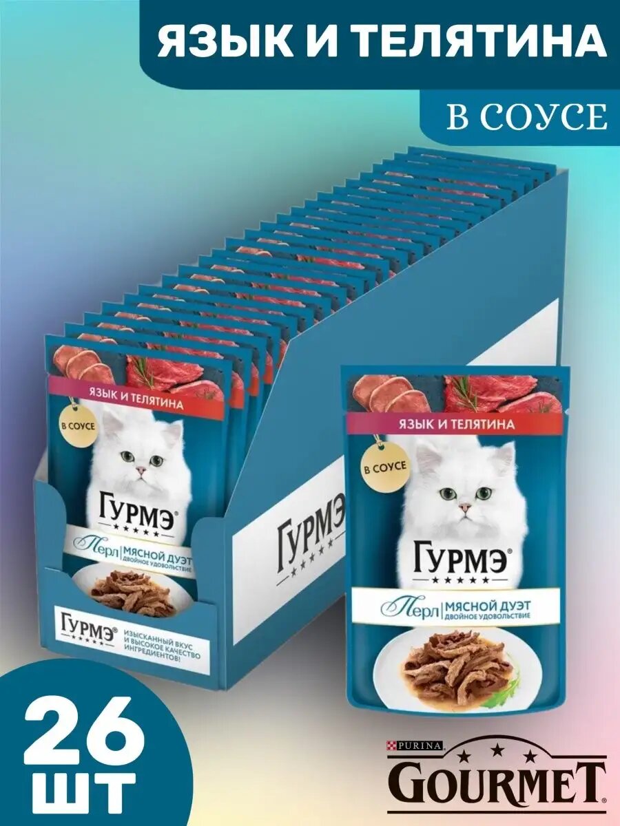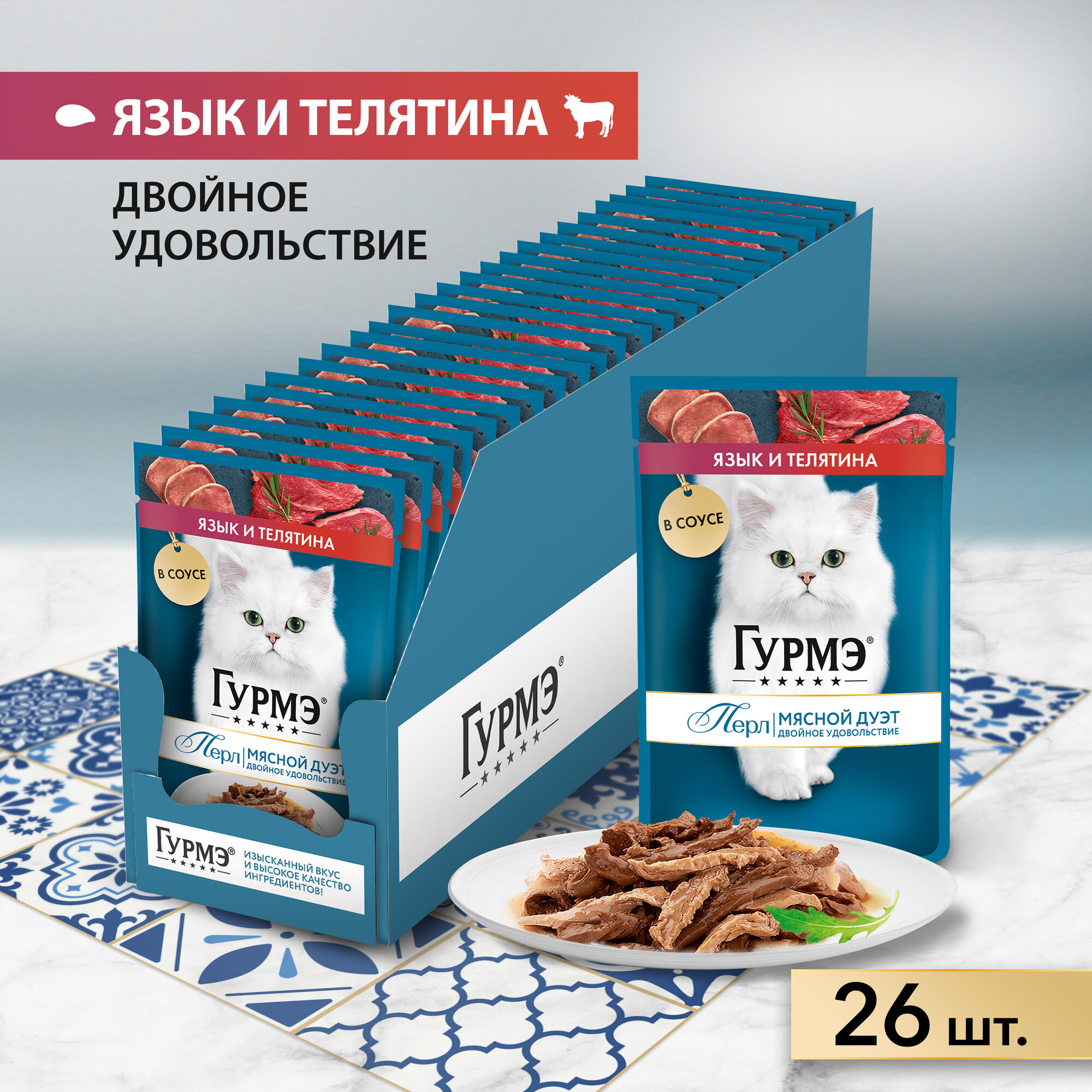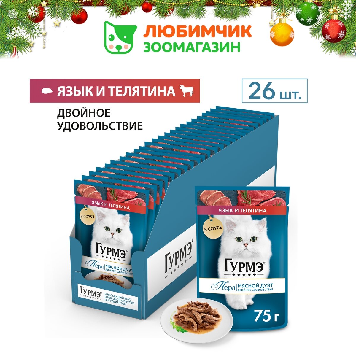 Купить Гурмэ Перл Мясной Дуэт 75 г влажный корм для взрослых кошек, со вкусом язык и телятина, нежное филе в соусе х26 штук