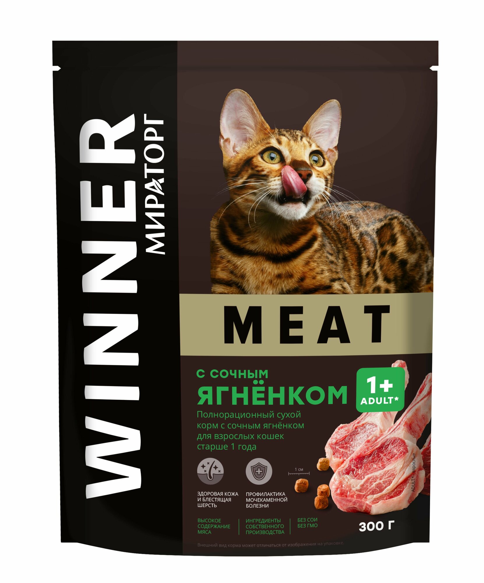 Купить Мираторг Meat Полнорационный сухой корм с сочным ягненком для взрослых кошек пакет, 300 гр