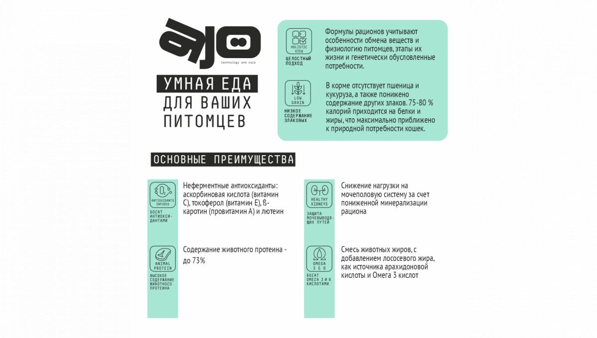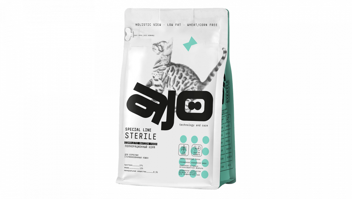 AJO для стерилизованных кошек с высоким содержанием белка, 1.5 кг.