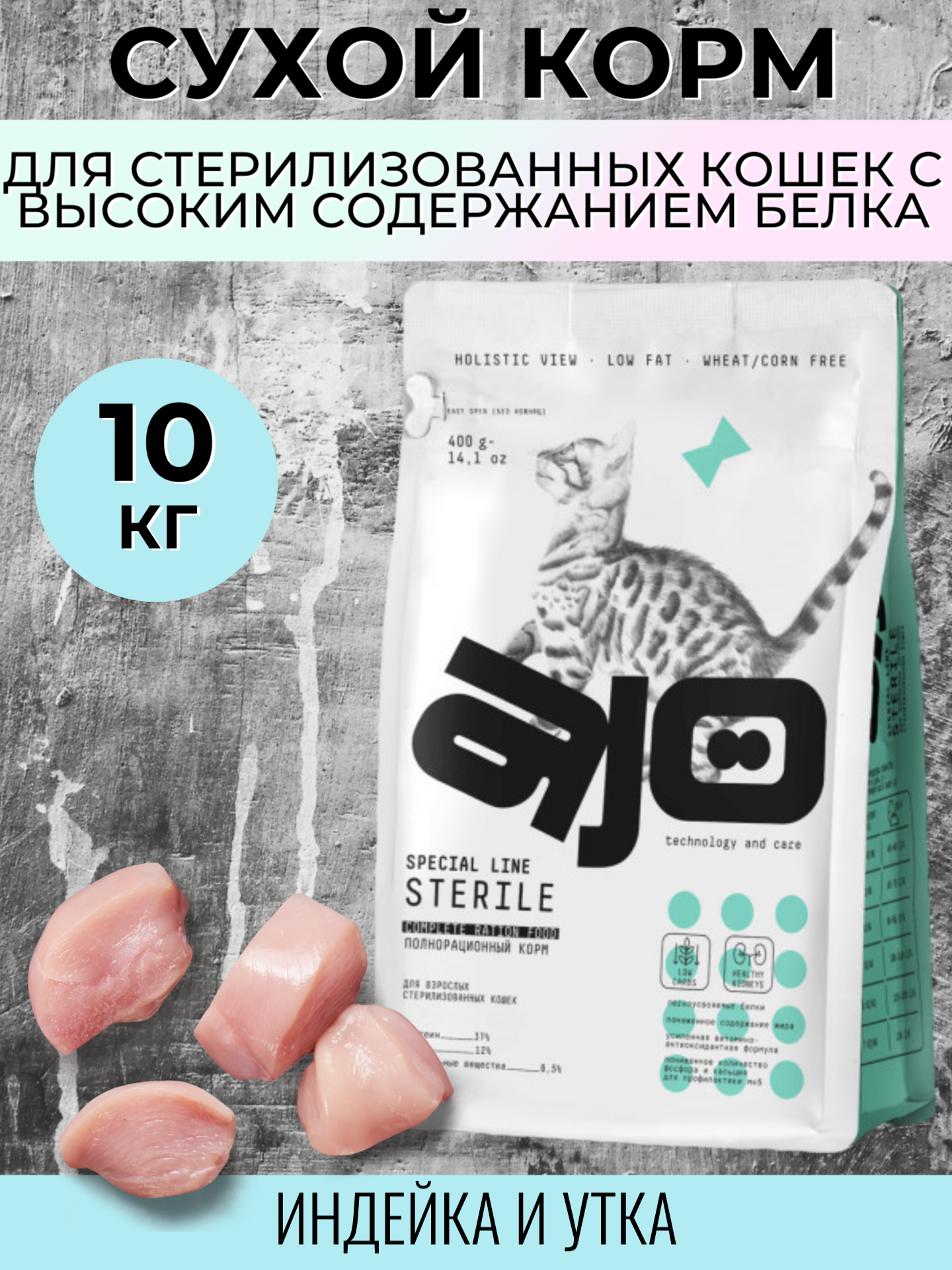 Купить Сухой корм AJO Cat Sterile для активных стерилизованных кошек с высоким содержанием белка, с индейкой и уткой, 10 кг