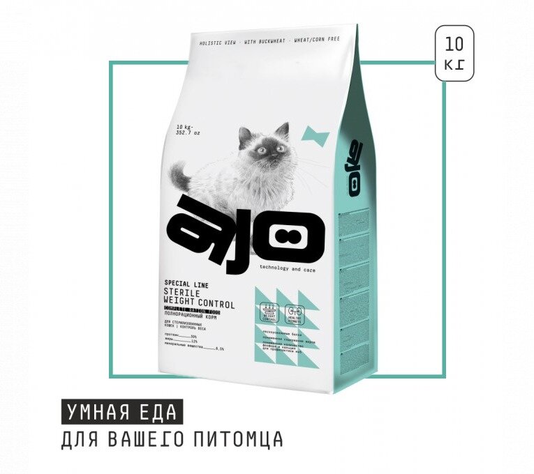 Корм для кошек сухой AJO / Айо Cat Sterile для взрослых стерилизованных животных, гранулы 400г / кошачья еда для ежедневного кормления