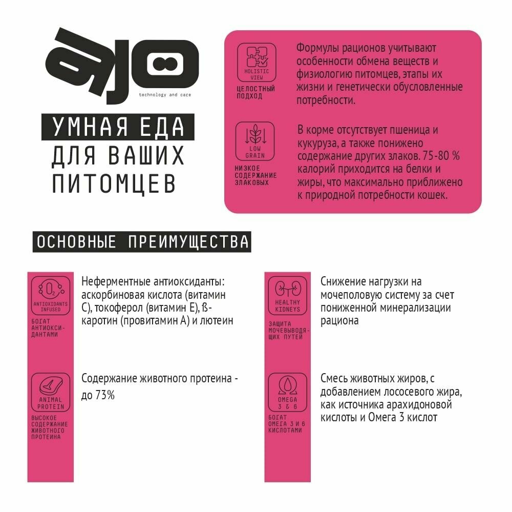 AJO Cat Delicate Taste 1,5 кг с ухой полнорационный корм для привередливых кошек и котят с индейкой
