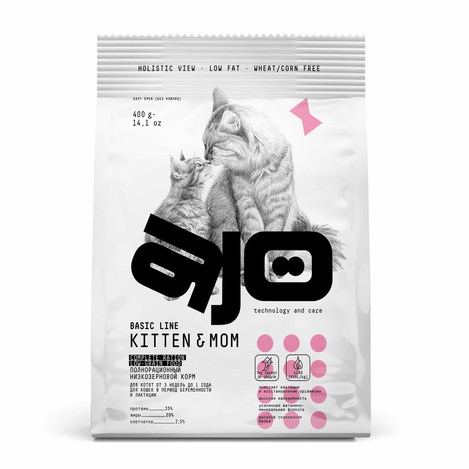 Сухой корм AJO Cat Kitten & Mom для котят, беременных и кормящих кошек 0,4 кг