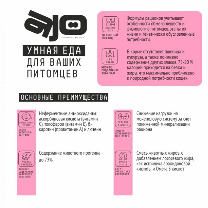 AJO Cat Kitten & Mom Сухой полнорационный корм для котят, беременных и кормящих кошек 1,5 кг