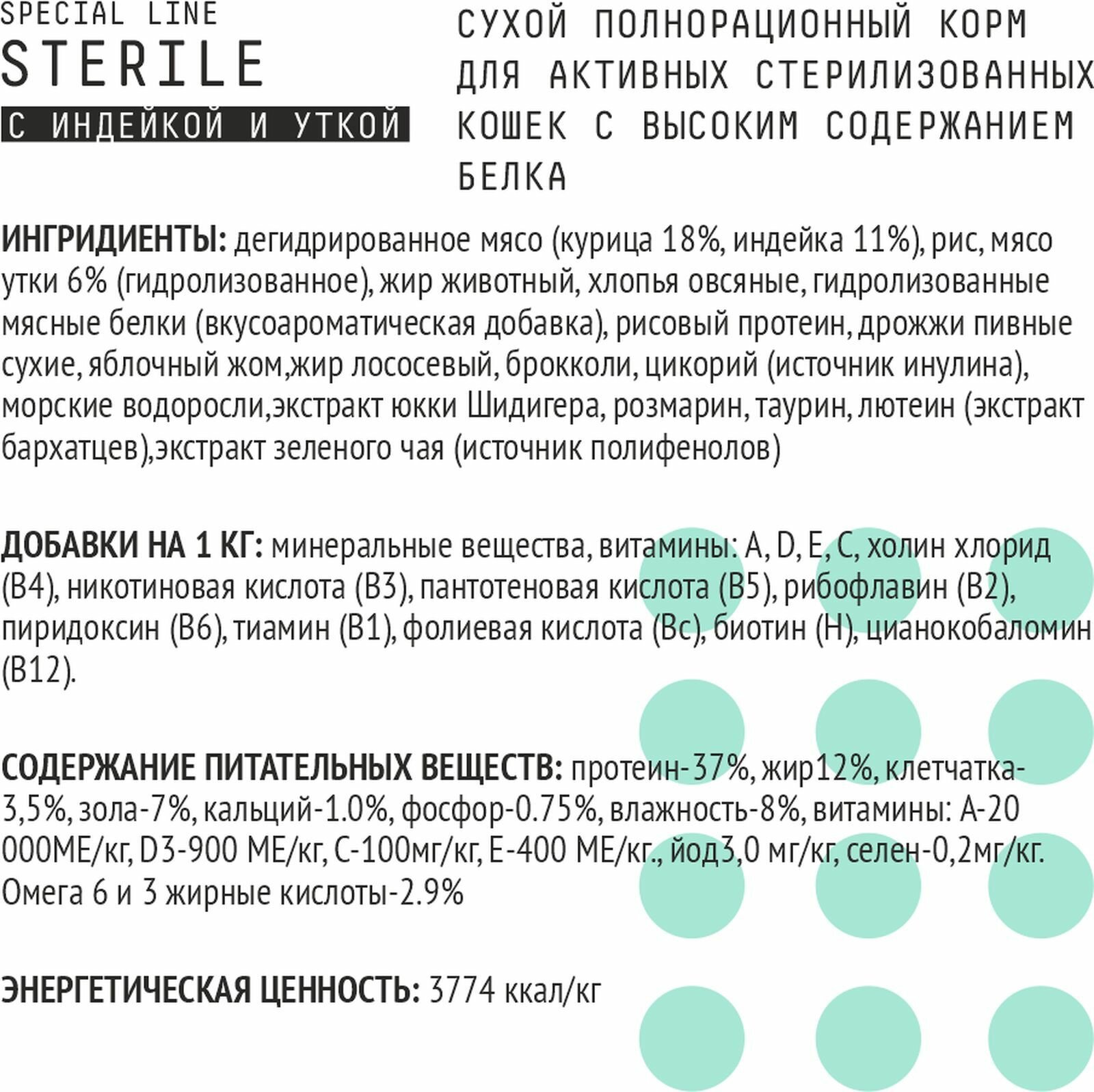 | Дополнительная информация | В корме отсутствует пшеница и кукуруза, а также понижено содержание других злаков. |