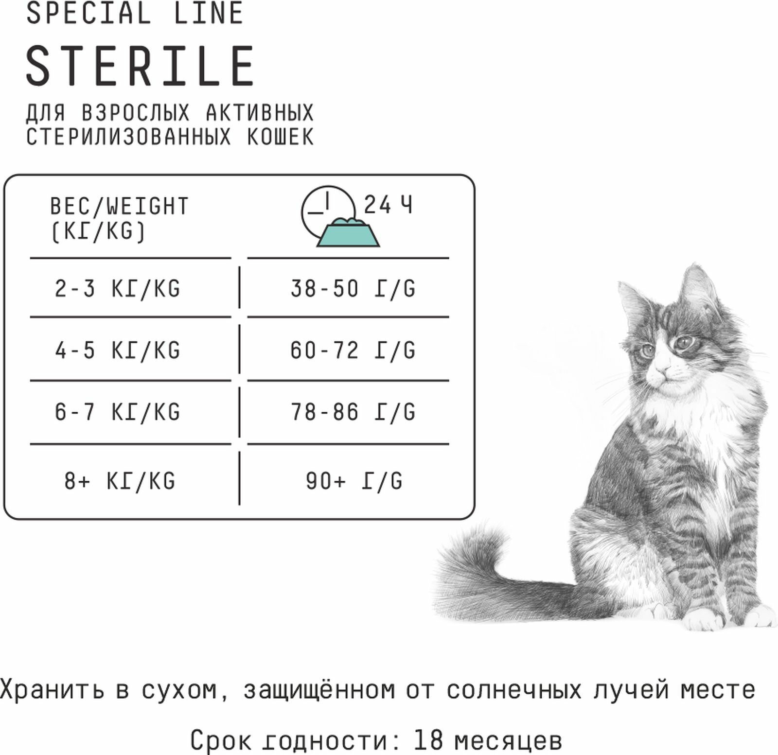| Особые потребности | беззерновой / гипоаллергенный / для беременных / кормящих кошек / для вывода шерсти / для живущих в помещении / для живущих на улице / для здоровья кожи и блеска шерсти / для здоровья костей и суставов / для профилактики стресса / для снижения запаха стула / для стерилизованных/кастрированных / при диабете / при чувствительном пищеварении / профилактика МКБ / профилактика зубного камня / профилактика избыточного веса |