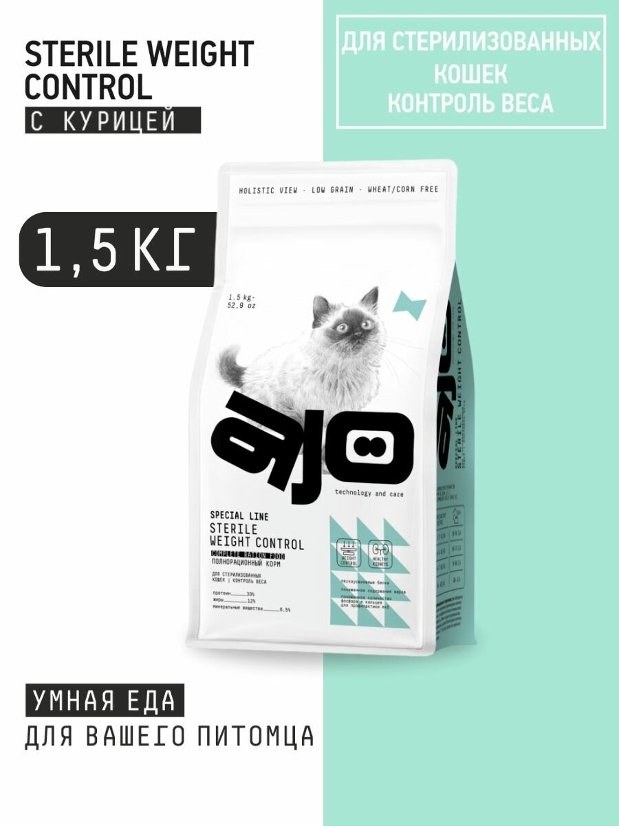 Купить AJO Cat Sterile Weight Control 1,5 кг сухой полнорационный корм для стерилизованных кошек контроль веса с курицей