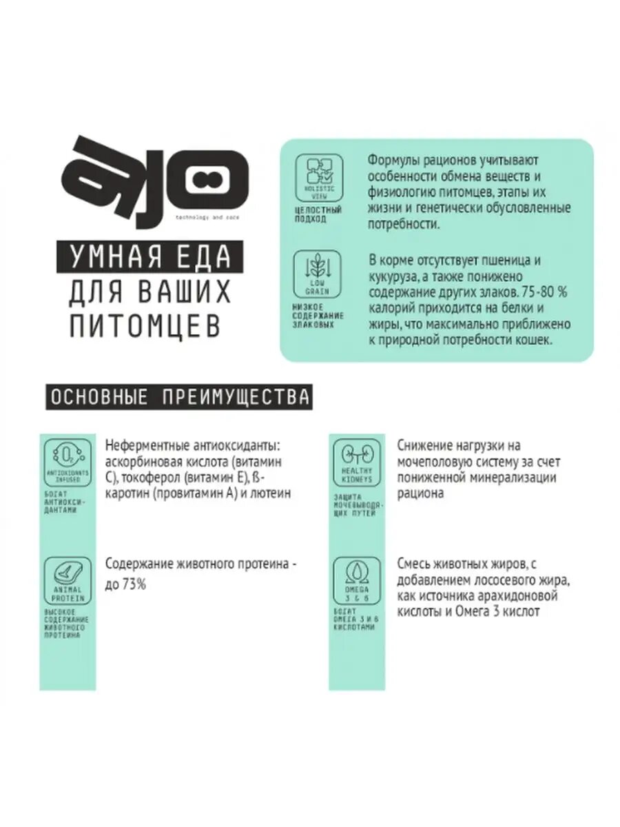 AJO Cat Skin & Hair Сухой корм для кошек здоровая кожа и красивая шерсть 400гр