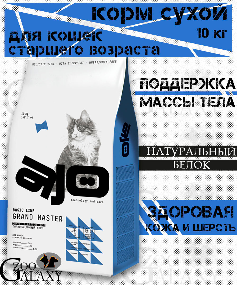 Сухой корм AJO Cat Grand Master для кошек старшего возраста 10 кг