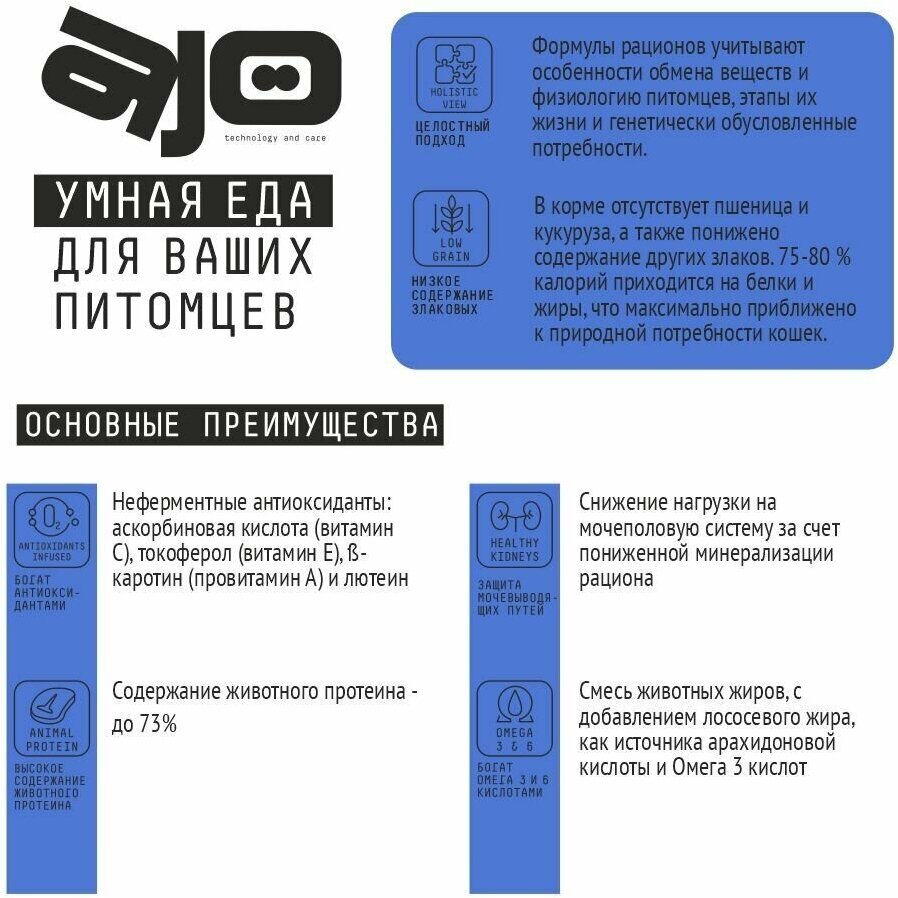 Корм для кошек сухой AJO / Айо Cat Sterile для взрослых стерилизованных животных, гранулы 400г / кошачья еда для ежедневного кормления