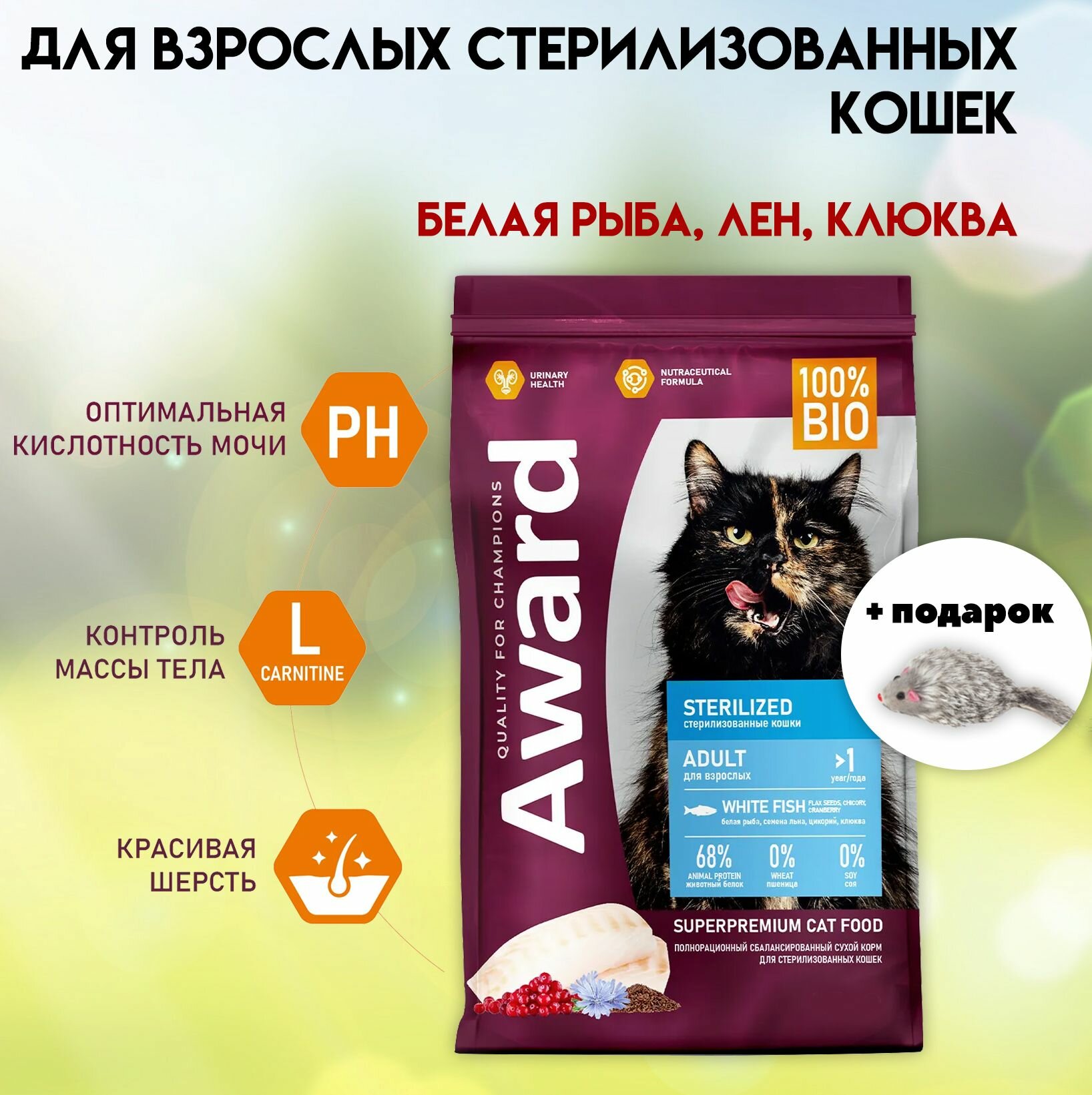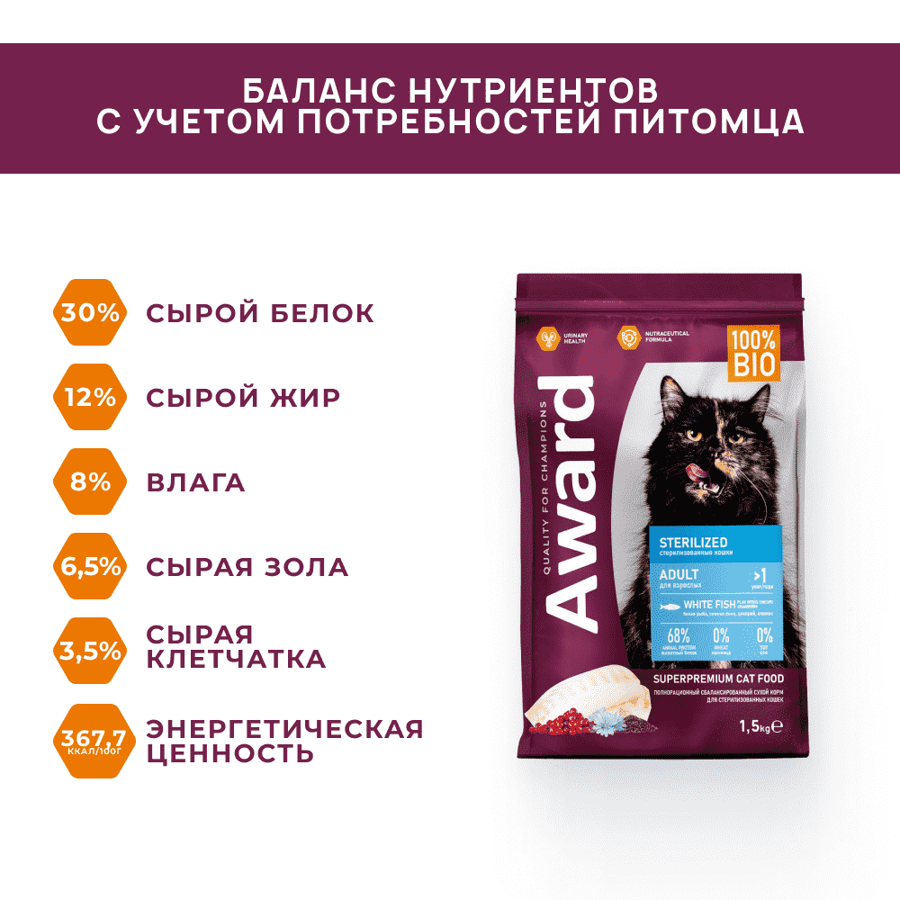 AWARD Sterilized Сухой корм для взрослых стерилизованных кошек с белой рыбой 1,5 кг