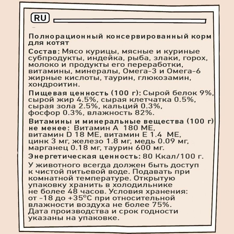 Ниже Вы можете прочитать отзывы на Корм для котят влажный ZILLII (Зиллии) Kitten (пауч) 12шт - 85г, Индейка в соусе, ознакомится с подробными характеристиками, посмотреть интересные обзоры и фотографии на Корм для котят влажный ZILLII (Зиллии) Kitten (пауч) 12шт - 85г, Индейка в соусе.