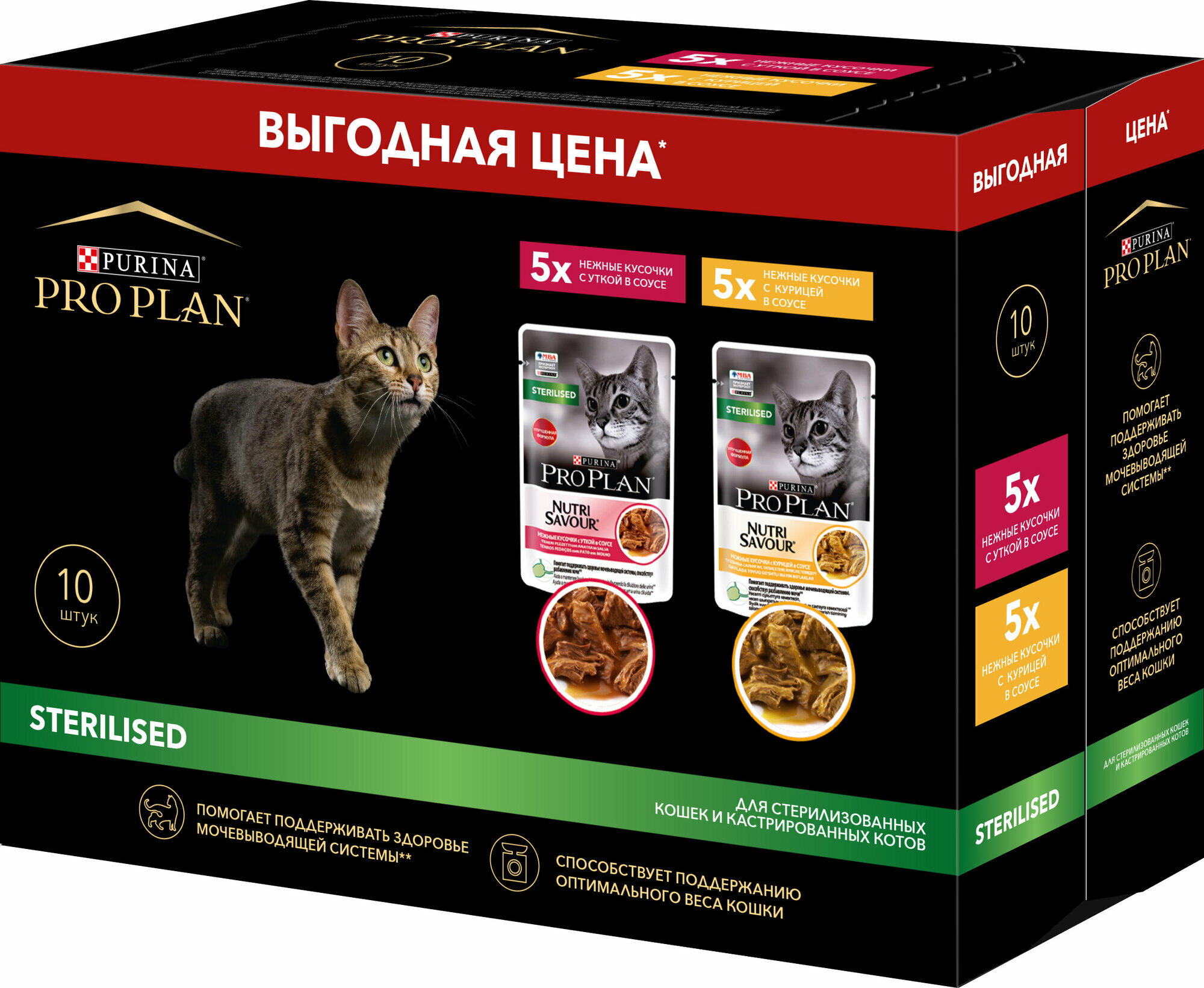 Pro Plan Nutrisavour Sterilised набор паучей для стерилизованных кошек и котов Курица и утка, 85 г. (10 шт.)