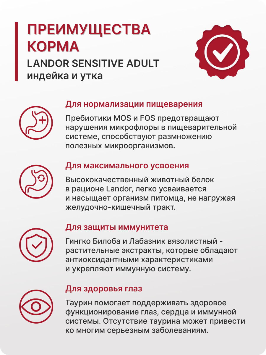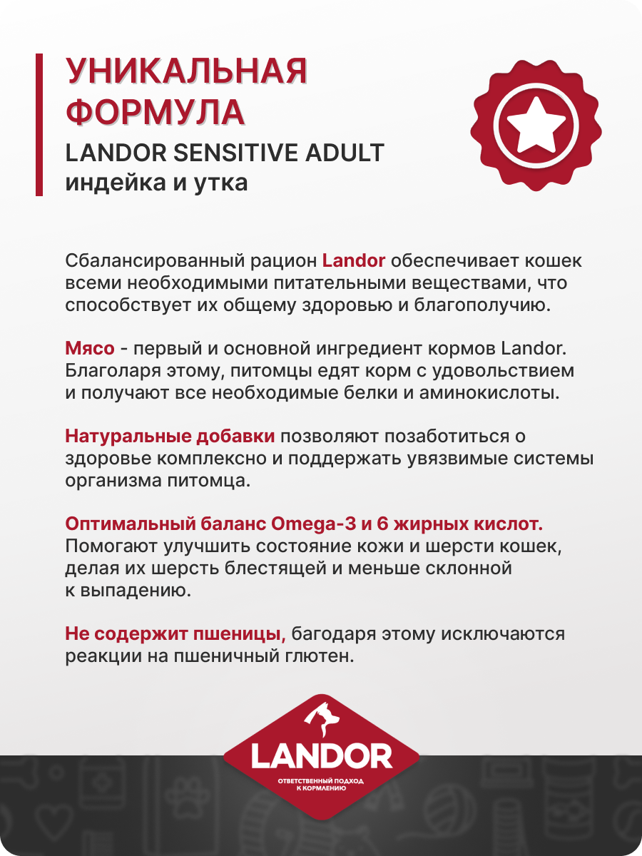 СохранитьCухой корм LANDOR SENSITIVE для кошек с чувствительным пищеварением индейка с уткой 2кг интересное:
