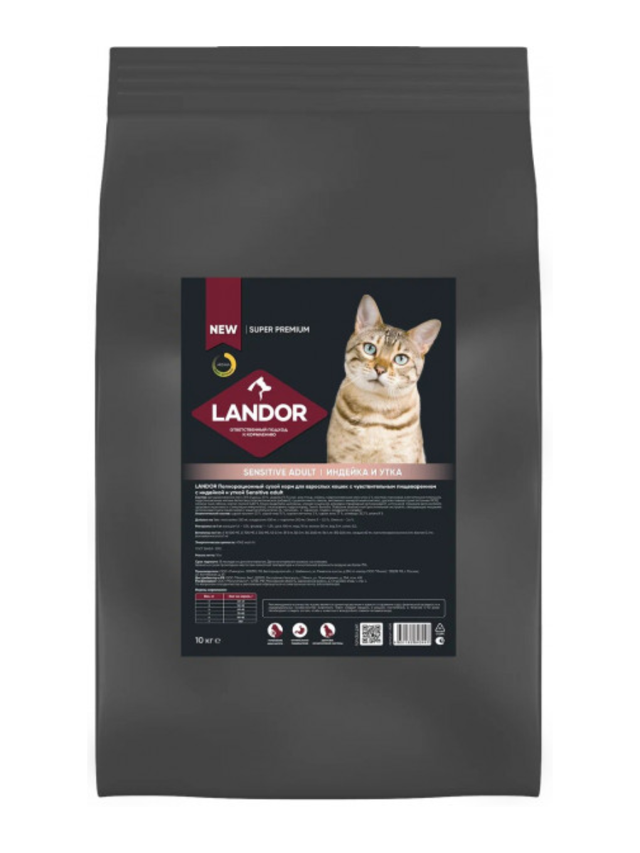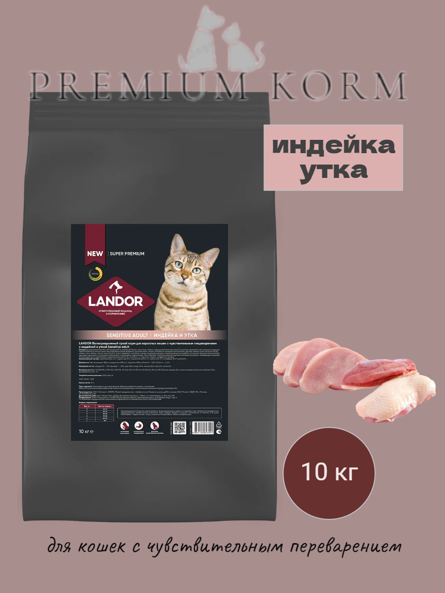 Купить Корм для кошек сухой LANDOR, с чувствительным пищеварением c индейкой и уткой, 10кг