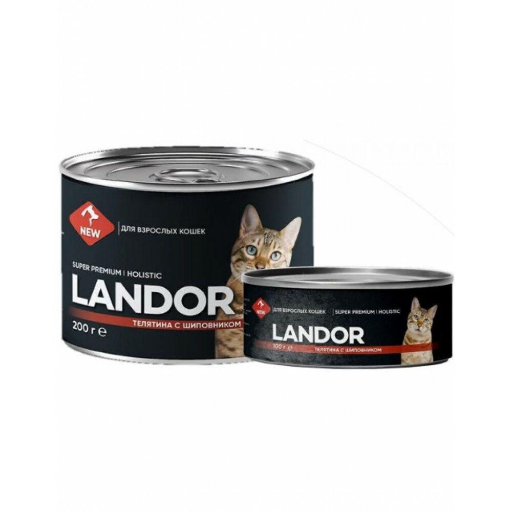 Влажный корм LANDOR Holistic для любых кошек, телятина с шиповником 200гр