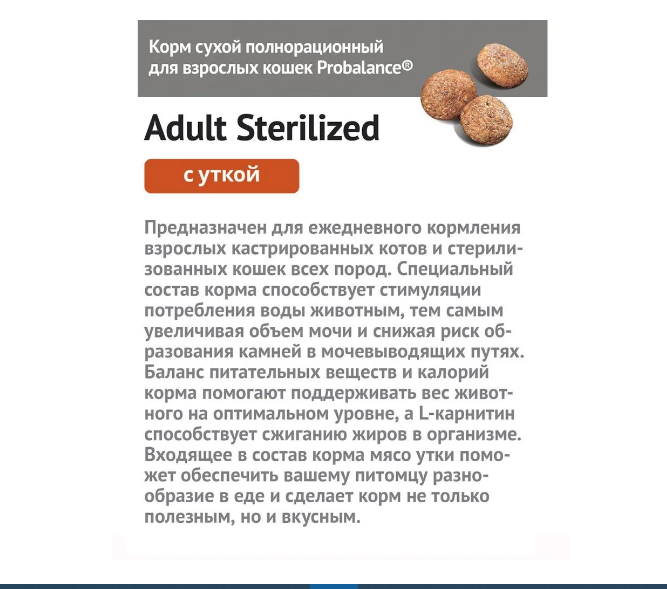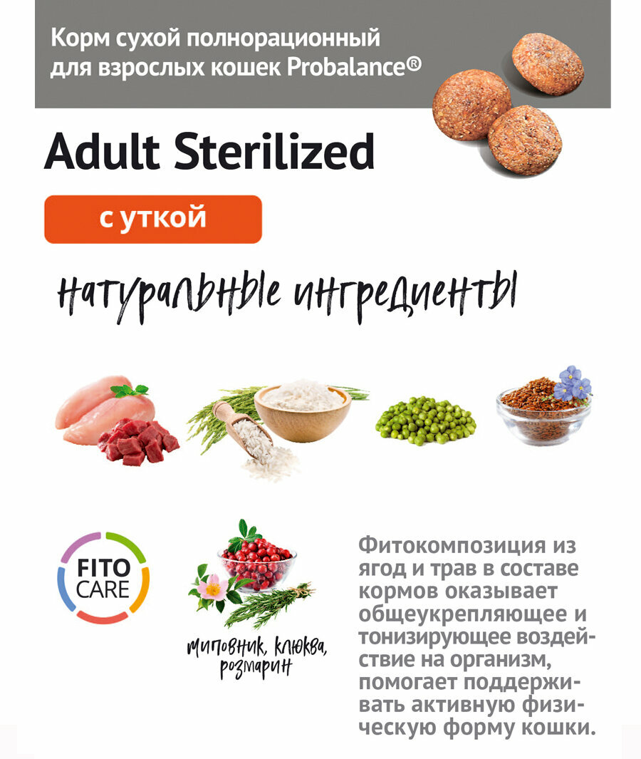 Корм сухой ProBalance Sterilized для стерилиз. кошек/ кастр. котов с уткой, 10кг интересное: