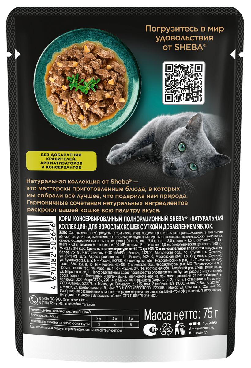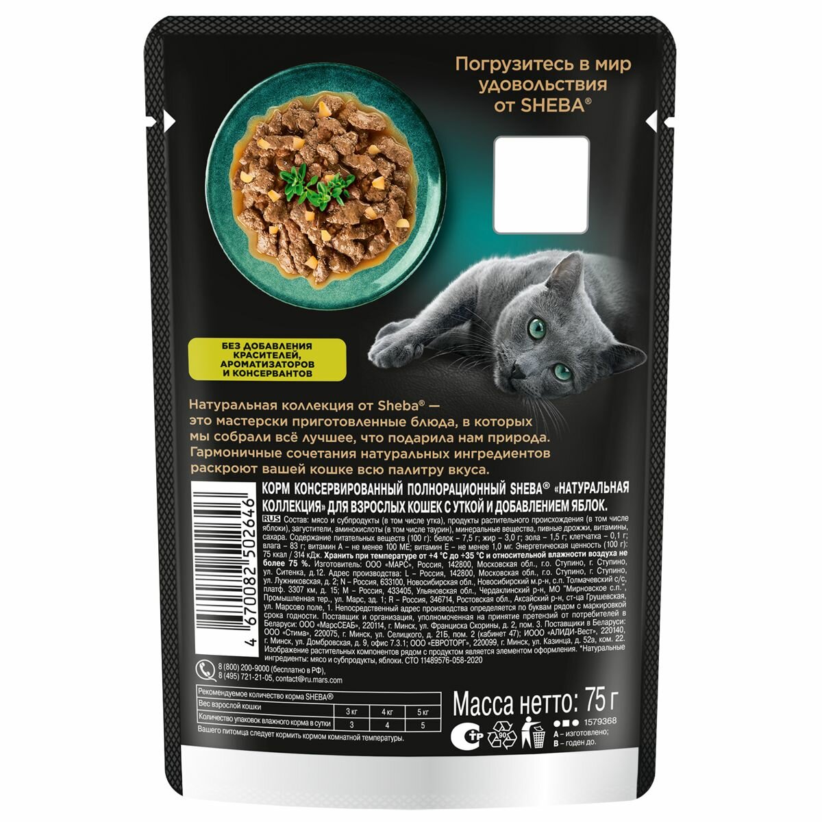 SHEBA натуральная коллекция для взрослых кошек с уткой и яблоками в соусе пауч 75 гр 75 гр х 10 шт
