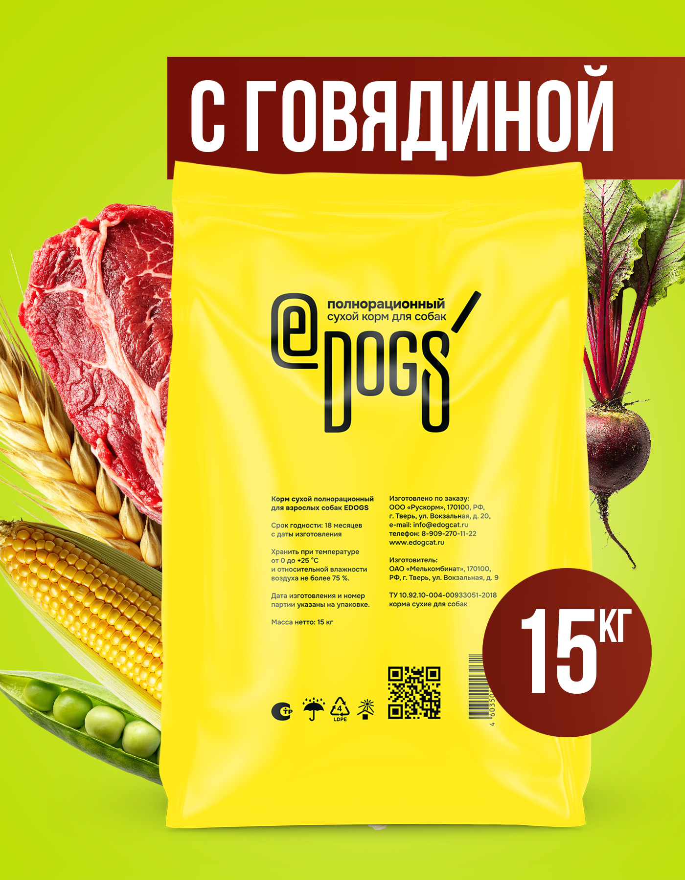 Корм сухой EDOGS для собак с говядиной, 15кг интересное: