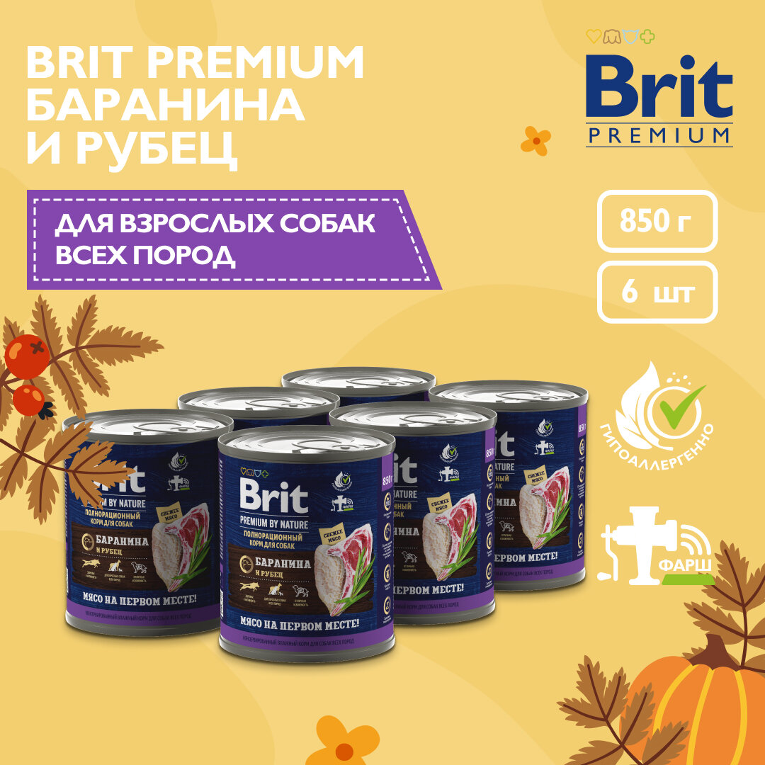 СохранитьВлажный корм для взрослых собак всех пород Brit Premium by Nature с бараниной с рубцом 6 шт. х 850г интересное: