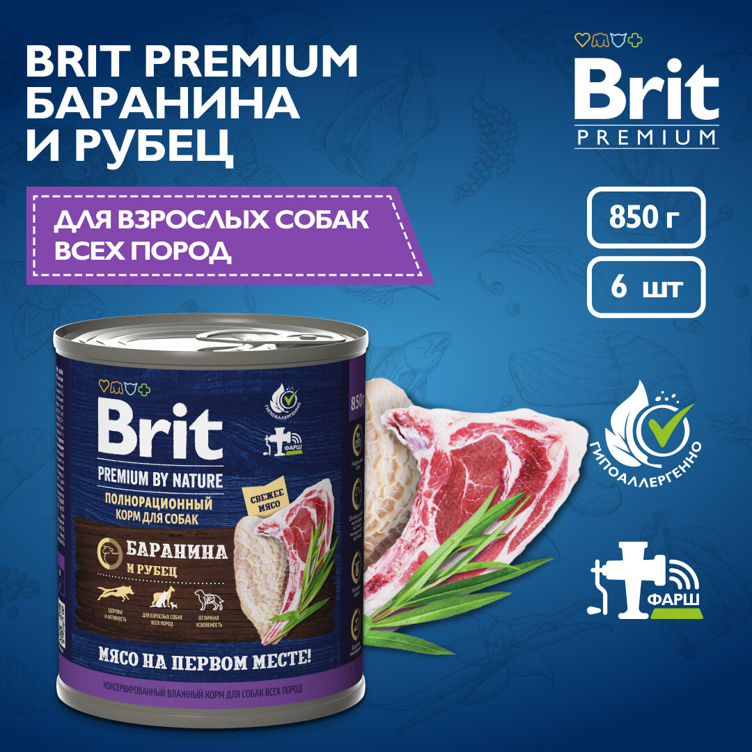 Brit Premium by Nature полнорационный влажный корм для собак, фарш из говядины с рисом, в консервах - 850 г х 6 шт