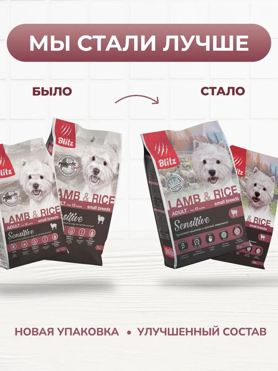 Корм сухой BLITZ Sensitive для собак мелких пород c чувствительным пищеварением Ягненок с рисом 2 кг